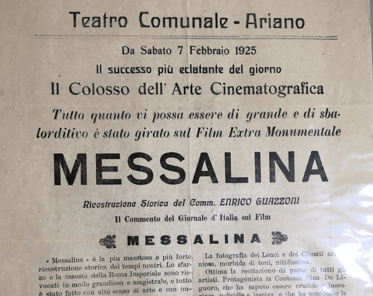 Cinema, Teatro, Irpinia, Ariano: Messalina, Guazzoni. Raro Volantino Pubblicitario (1925)
