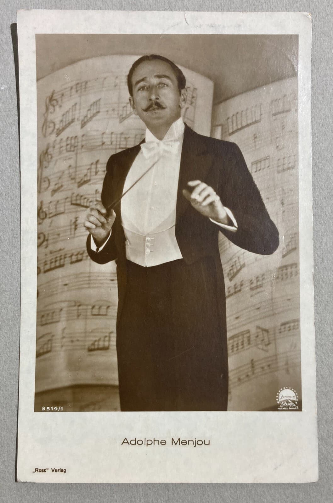 Cinema, Attori, Musica: Adolphe Menjou, Ritratto Fotografico Su Cartolina d'Epoca