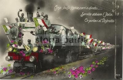 Militaria: Grande Guerra, Ferrovia E Treno Con Militari In Congedo Per Il Rientro In Patria