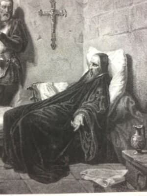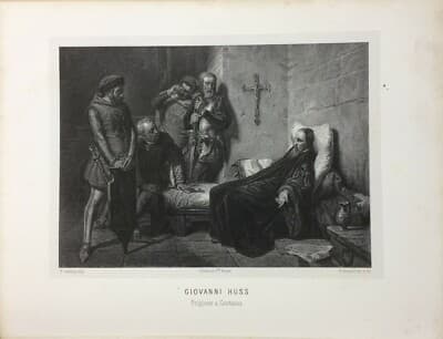 Giovanni Huss: Prigione A Costanza. Litografia Di G. Arnaud Da Enrico Gamba (XIX Secolo)
