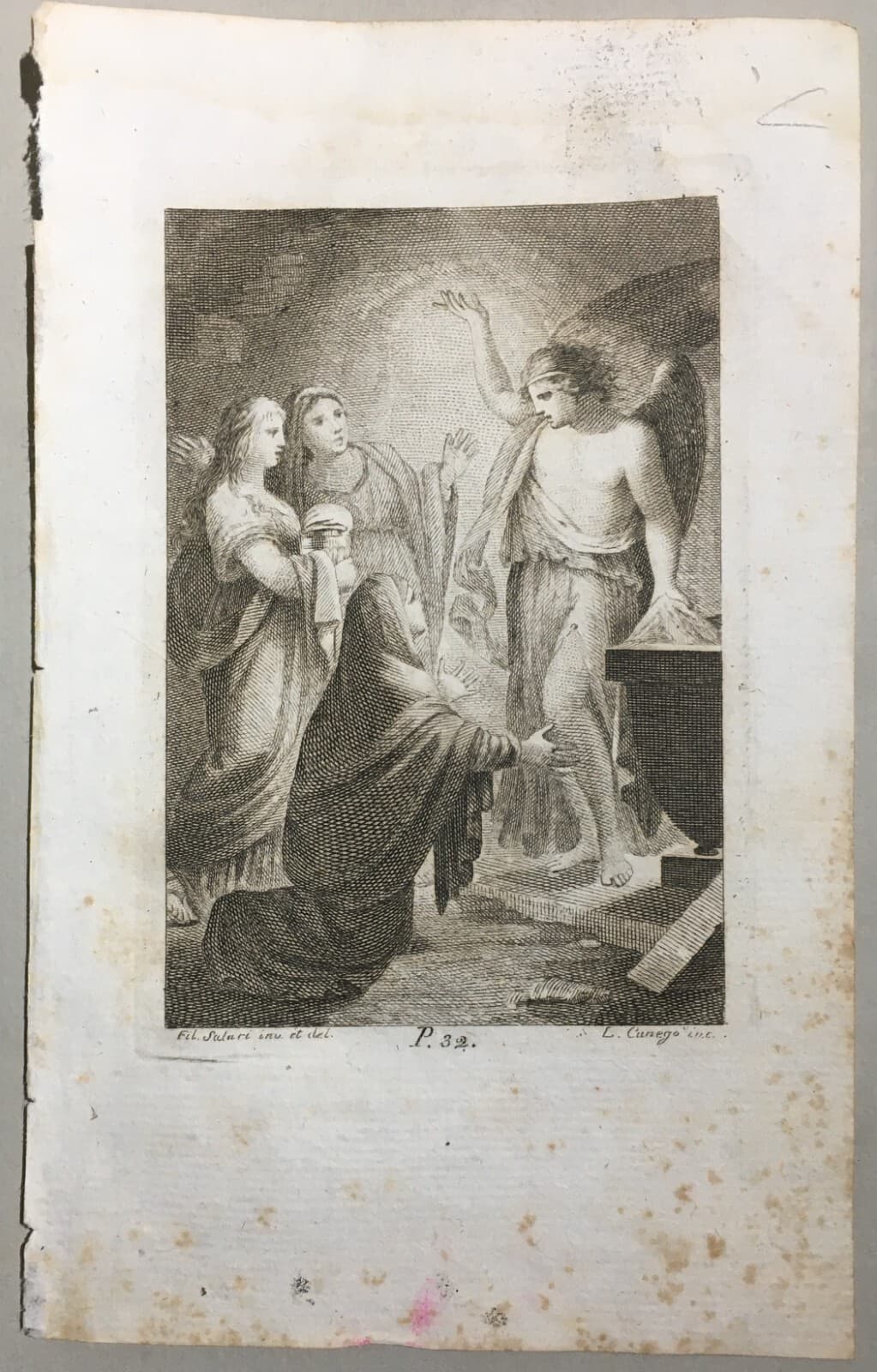 Antica Stampa Popolare Devozionale: Resurrezione Con Angelo, Filippo Salari E Luigi Cunego, XIX Secolo