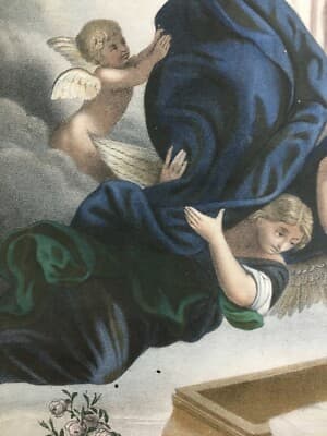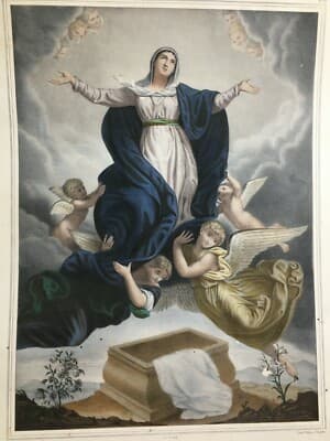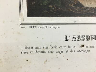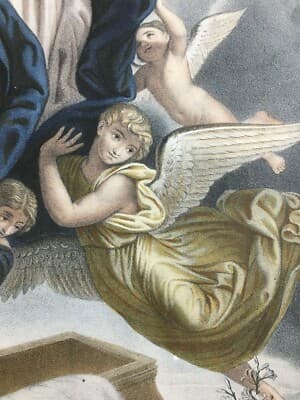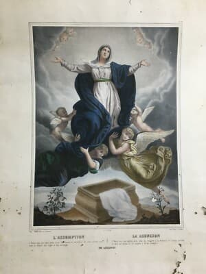 Arte Popolare Devozionale: L'Assunzione Della Vergine Con Angeli. Antica Litografia Turgis & Casse Frères, XIX Secolo