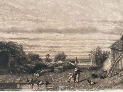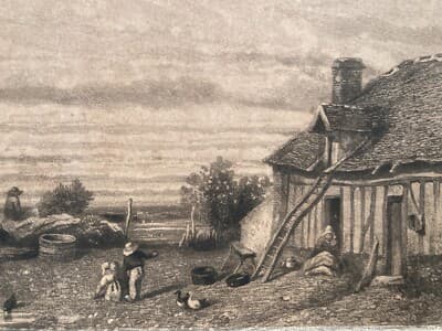 Incisione Antica Della Normandia Di Jules Dupré Veduta Di Fattoria, XIX Secolo
