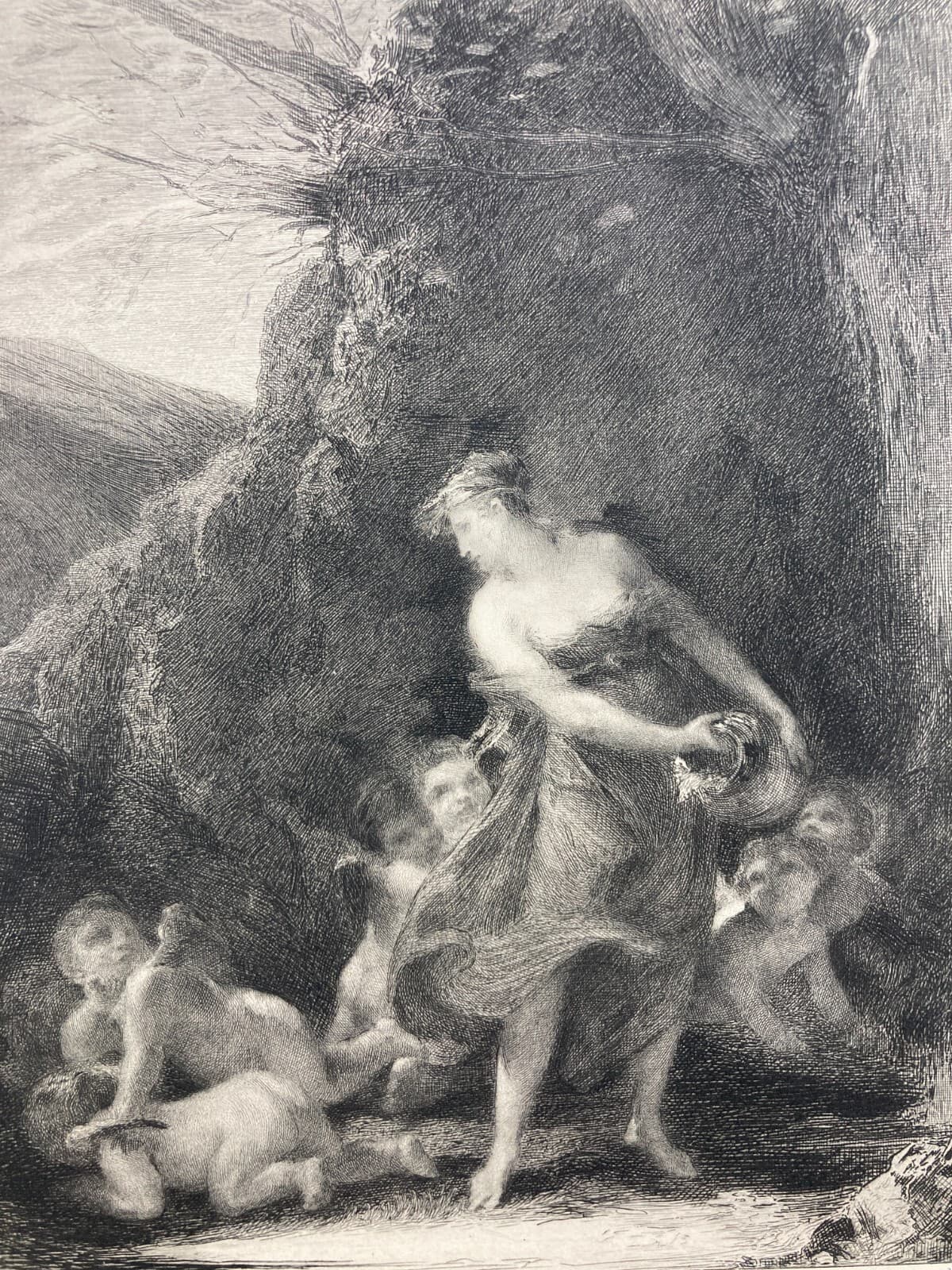 Aristide Sartorio, Le Tenebre. Antica Stampa Simbolista Per L'Esposizione Di Venezia