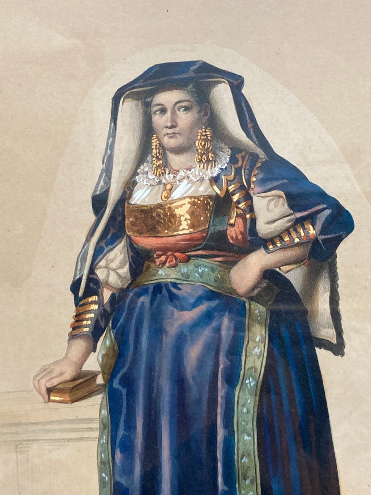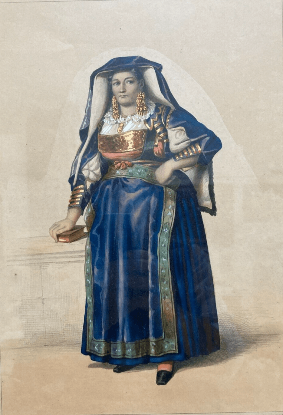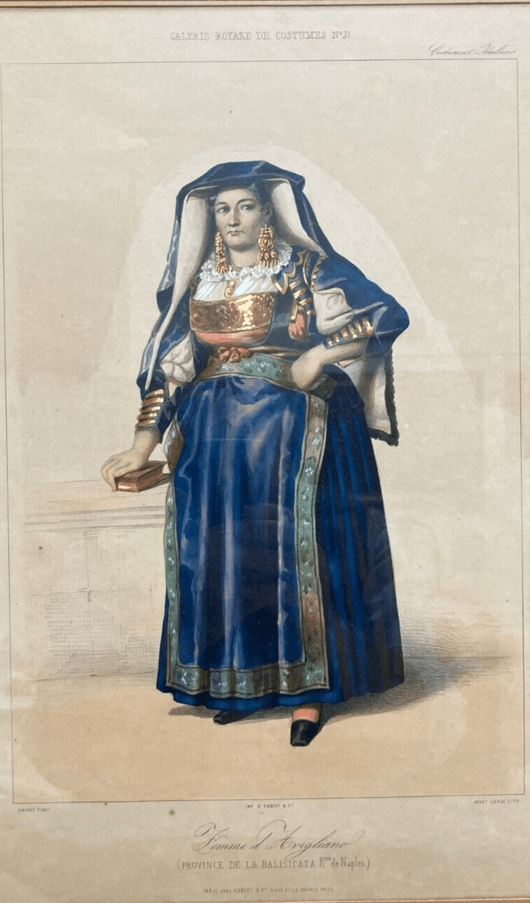 Donna Di Avigliano, Basilicata: Costume Popolare E Tradizioni Lucane. Litografia A Colori.