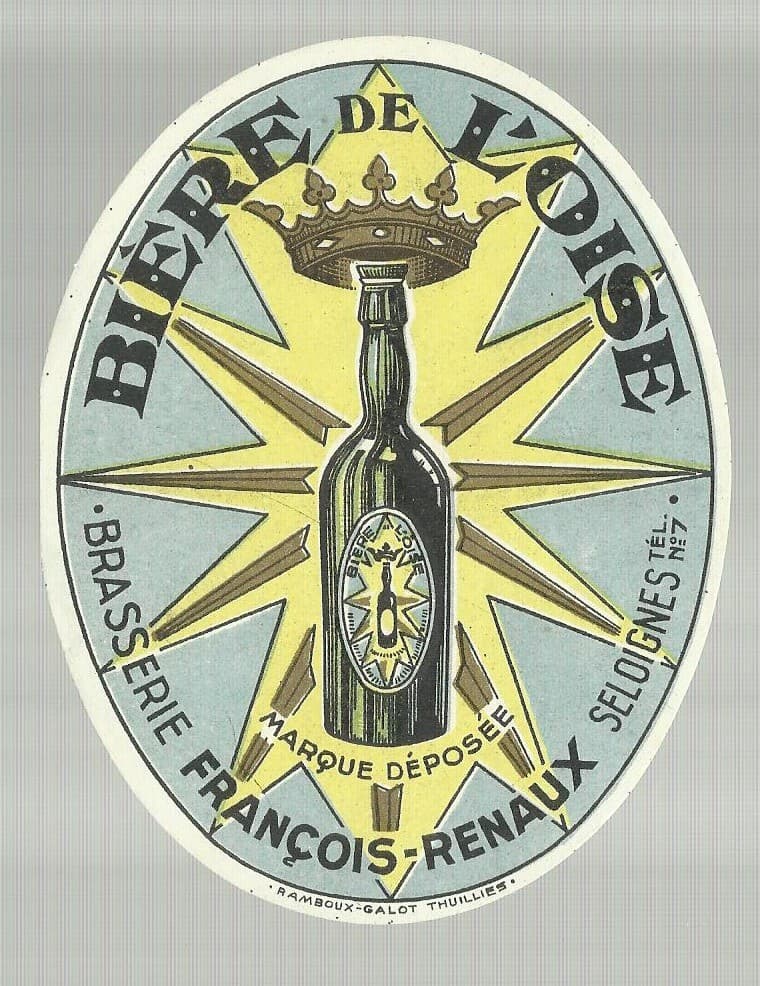 Francois Renaux: Biere De L'Oise Brasserie. Etichetta Araldica d'Epoca