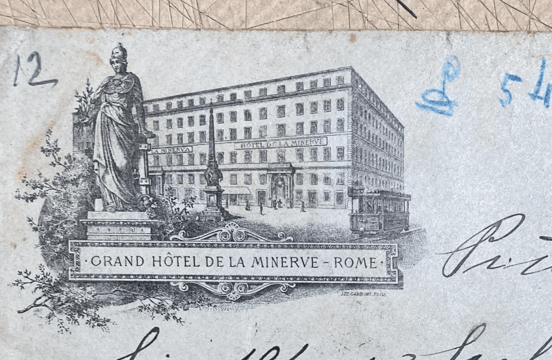 Roma Antichi Alberghi Grand Hotel De La Minerve Busta Pubblicitaria Intestata