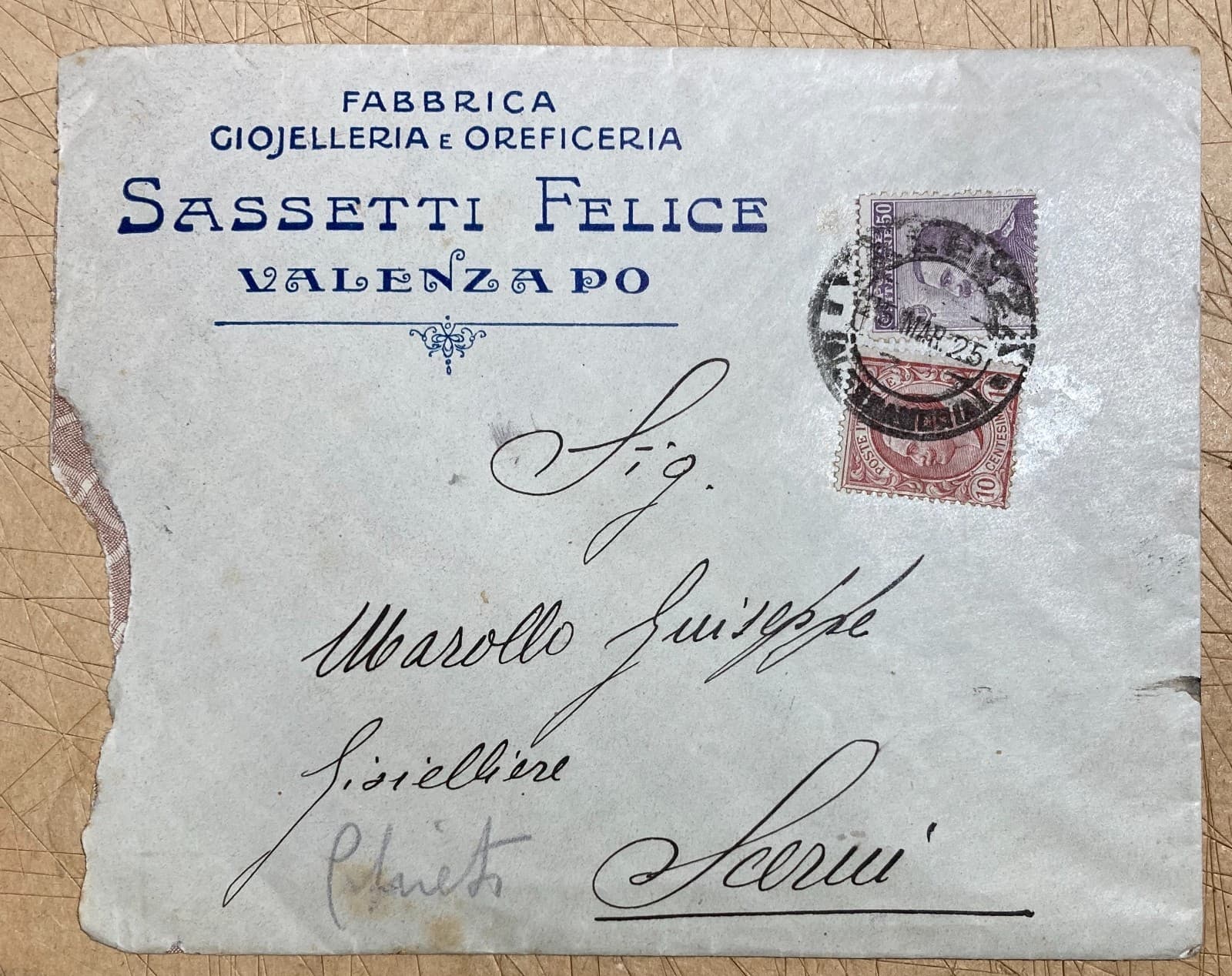 Valenza Po Gioielleria E Oreficeria Antica Busta Intestata