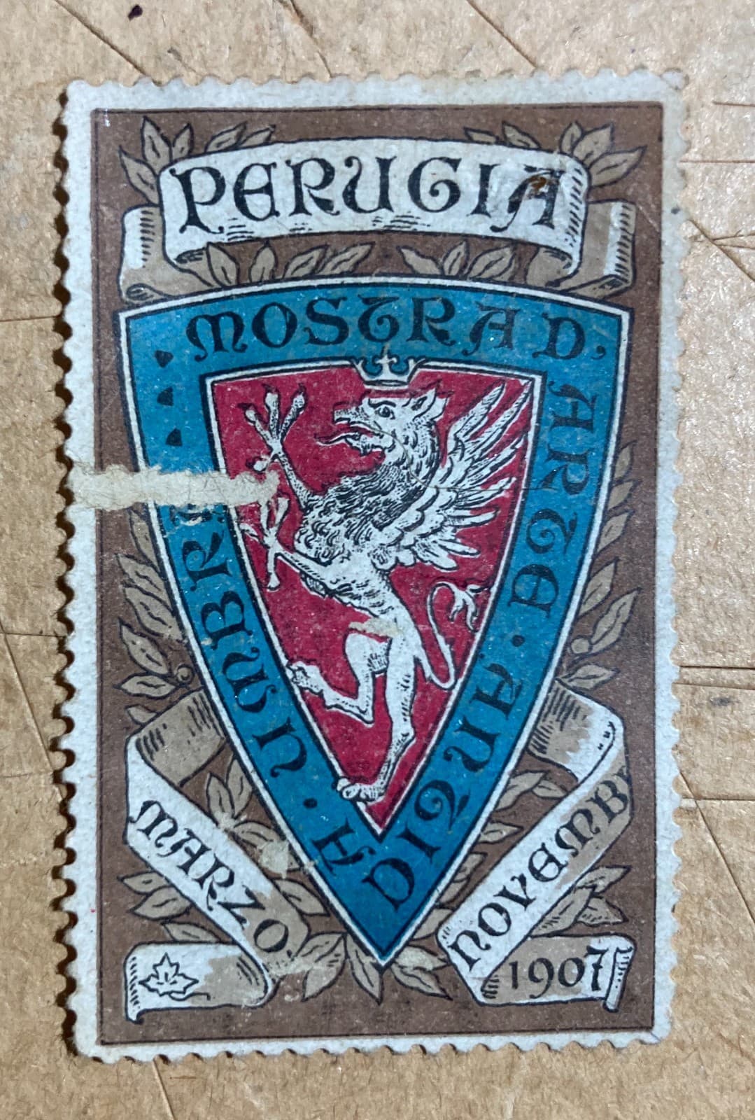 Umbria, Perugia: Mostra d'Arte Antica. Chiudilettera Pubblicitario, 1907. Araldica