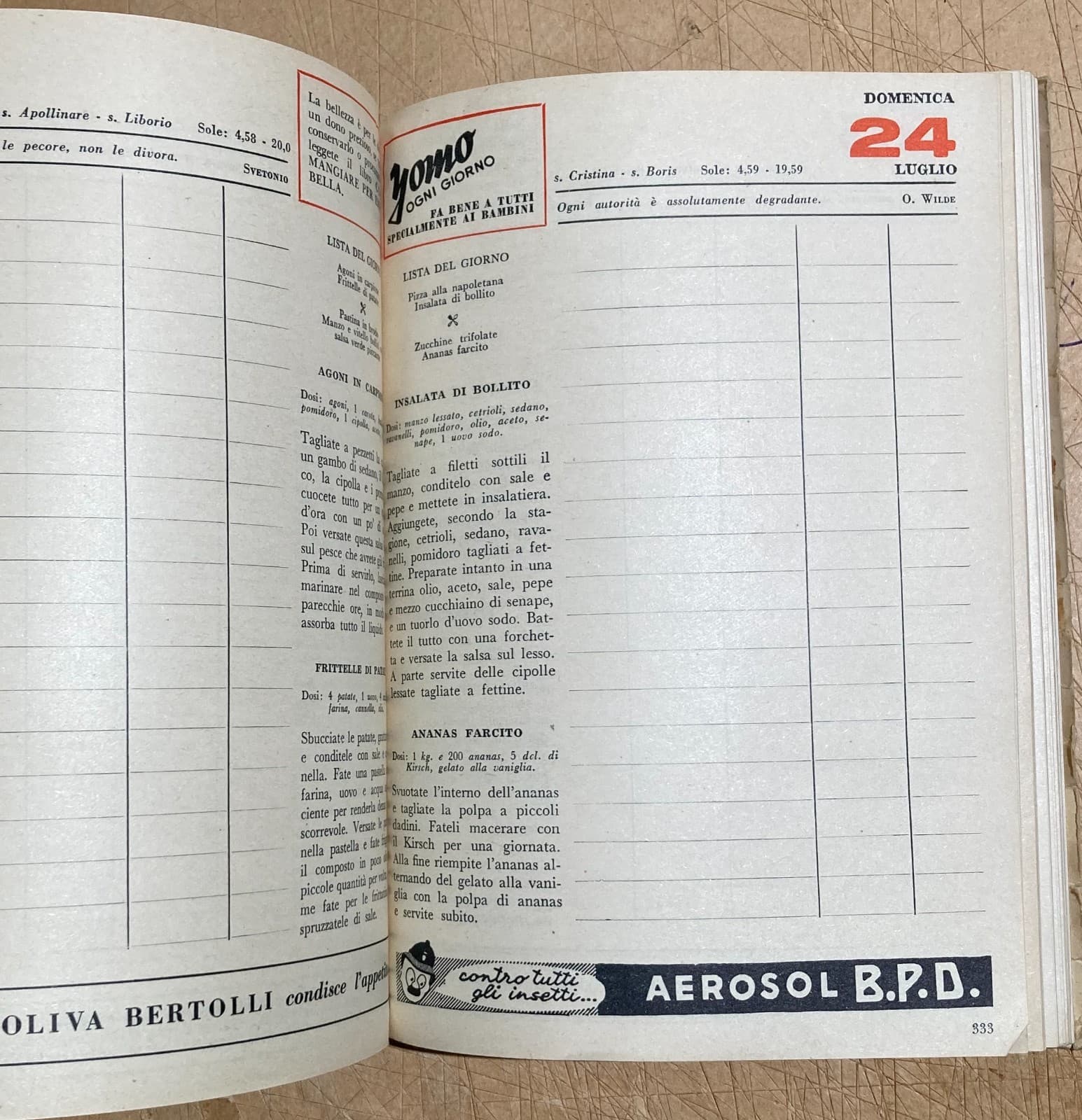 Libro Di Casa 1955: Agenda Di Casa, Cucina E Pubblicità Illustrata Da Gruau