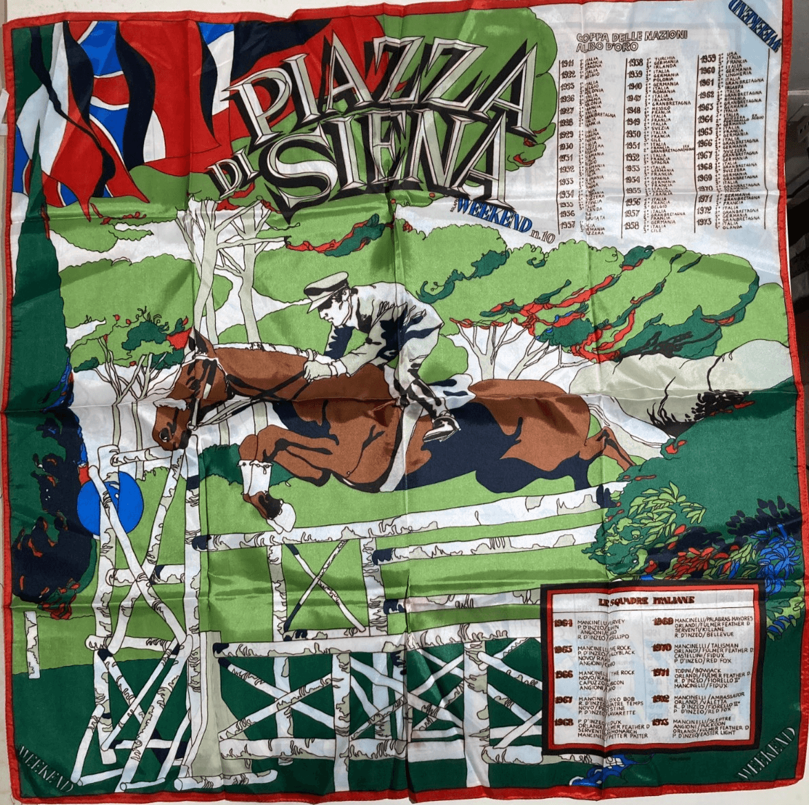 Equitazione, Cavalli E Palio Di Siena. Tessuto Pubblicitario Illustrato Da Rostagno