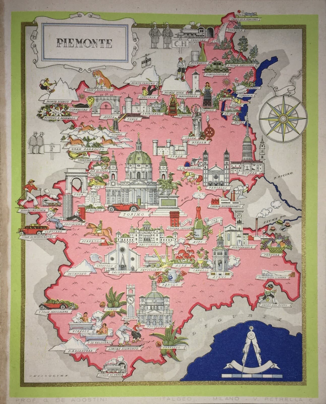 Arte, Folklore E Cartografia Del Piemonte: Mappa Di Vsevolode Nicouline Con Torino, Aosta E Novara