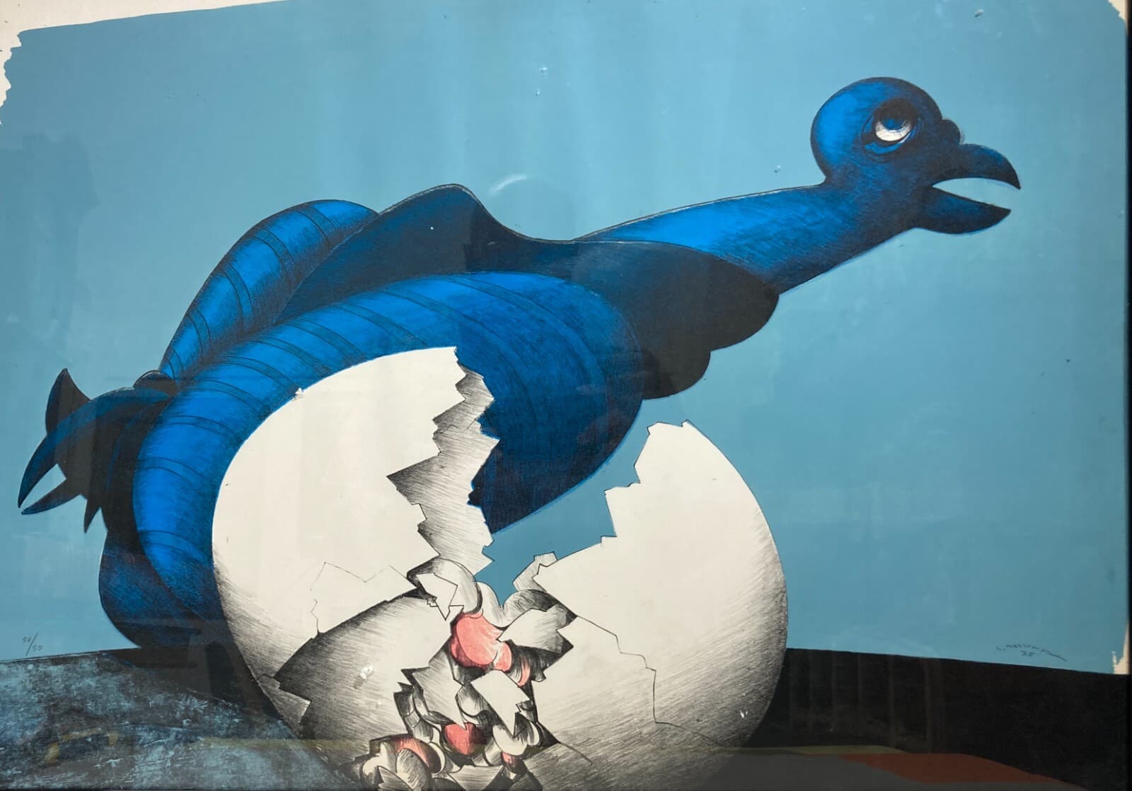 Arte Decorativa Del '900. Artista Messina. Inusuale Grafica Policroma. Uovo Schiuso.