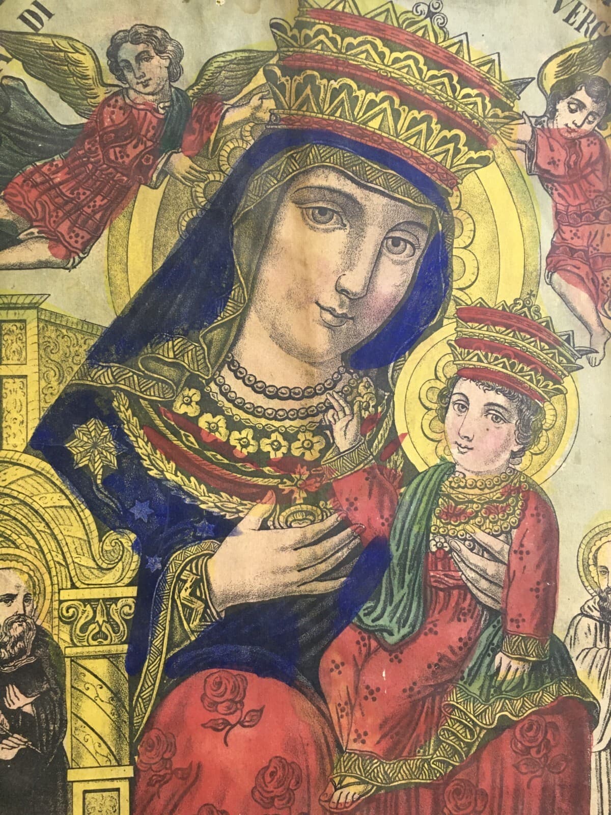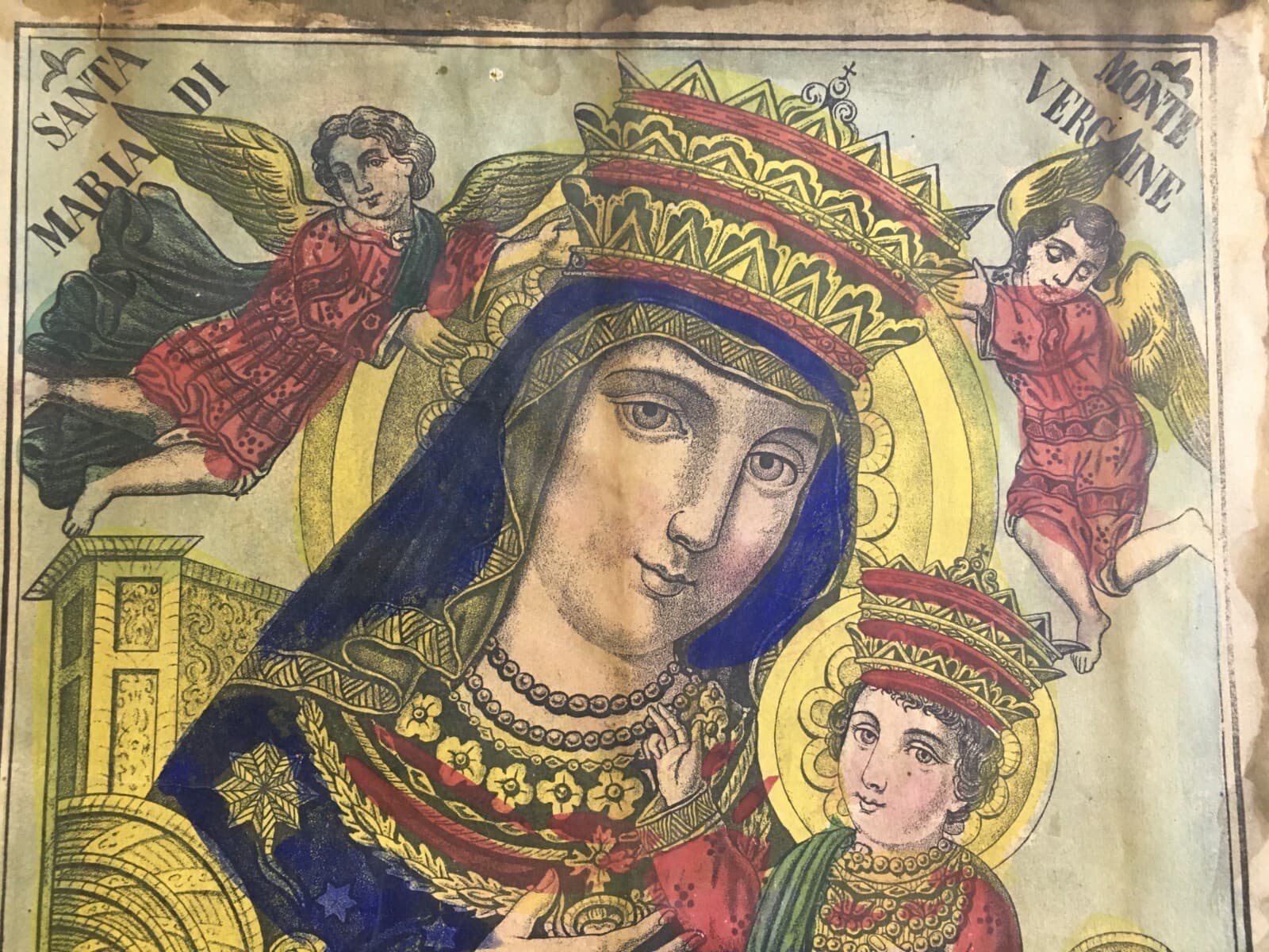 Antica Stampa Popolare Devozionale Madonna Di Montevergine Irpinia