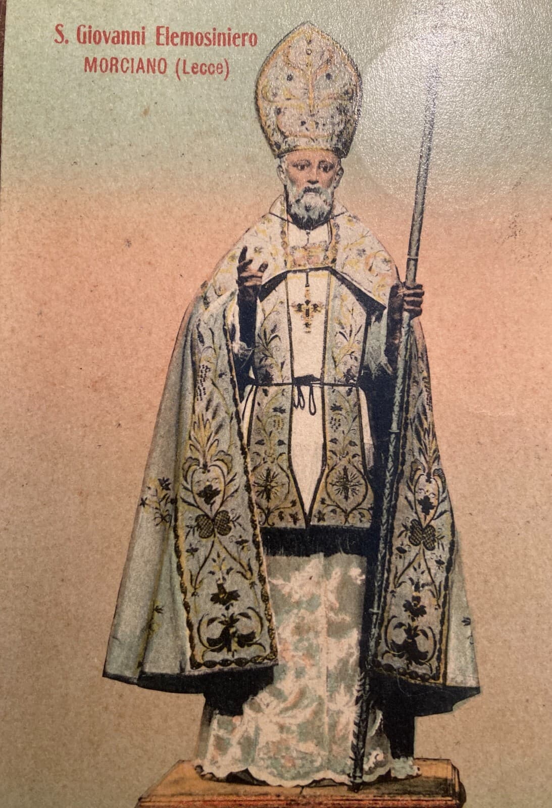 Antica Stampa Popolare Devozionale San Giovanni Elemosiniere Morciano Di Leuca (Salento)