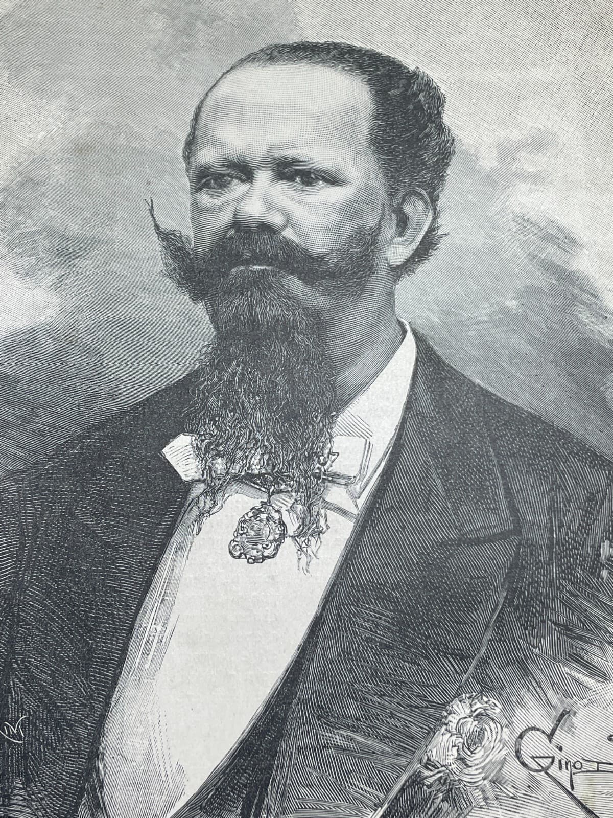 Araldica Savoia: Re Vittorio Emanuele, Antico Ritratto Stampa Artistica Bini, Roma