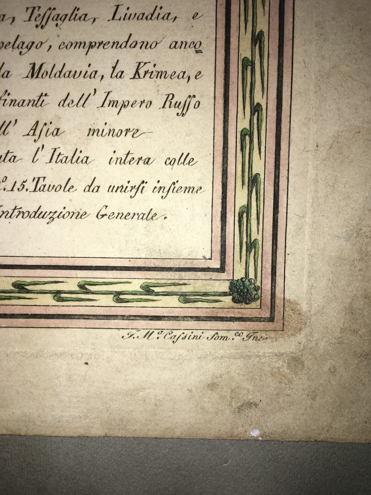Atlante Geografico Del '700, Antica Tavola Dell'Indice, Incisione Colorata, Cassini