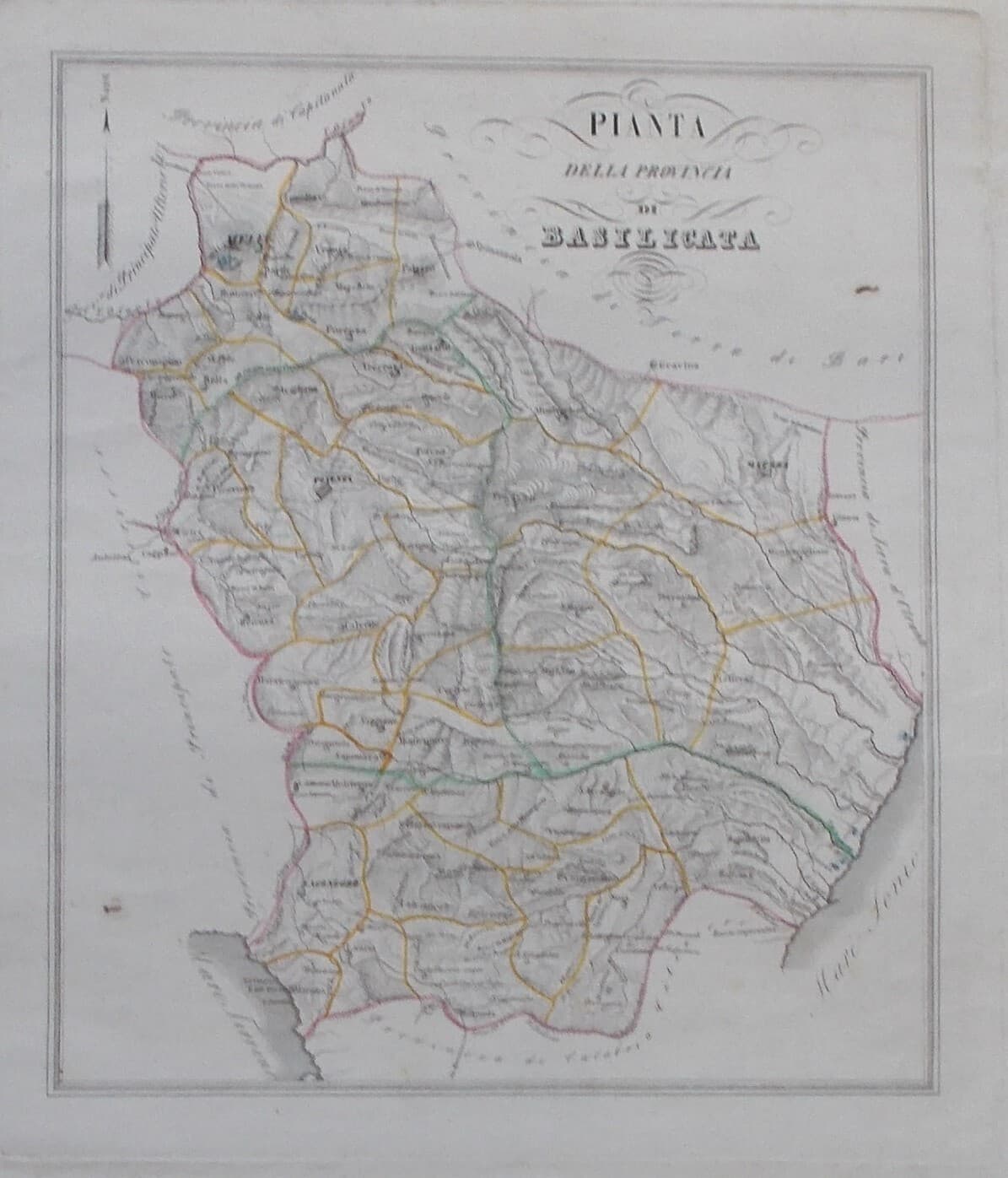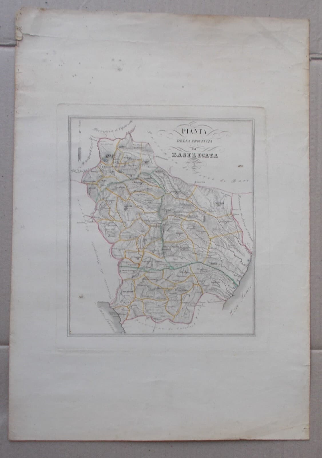 Antica Cartografia: Basilicata, Lucania, Potenza, Matera. Mappa Geografica Di De Sanctis.