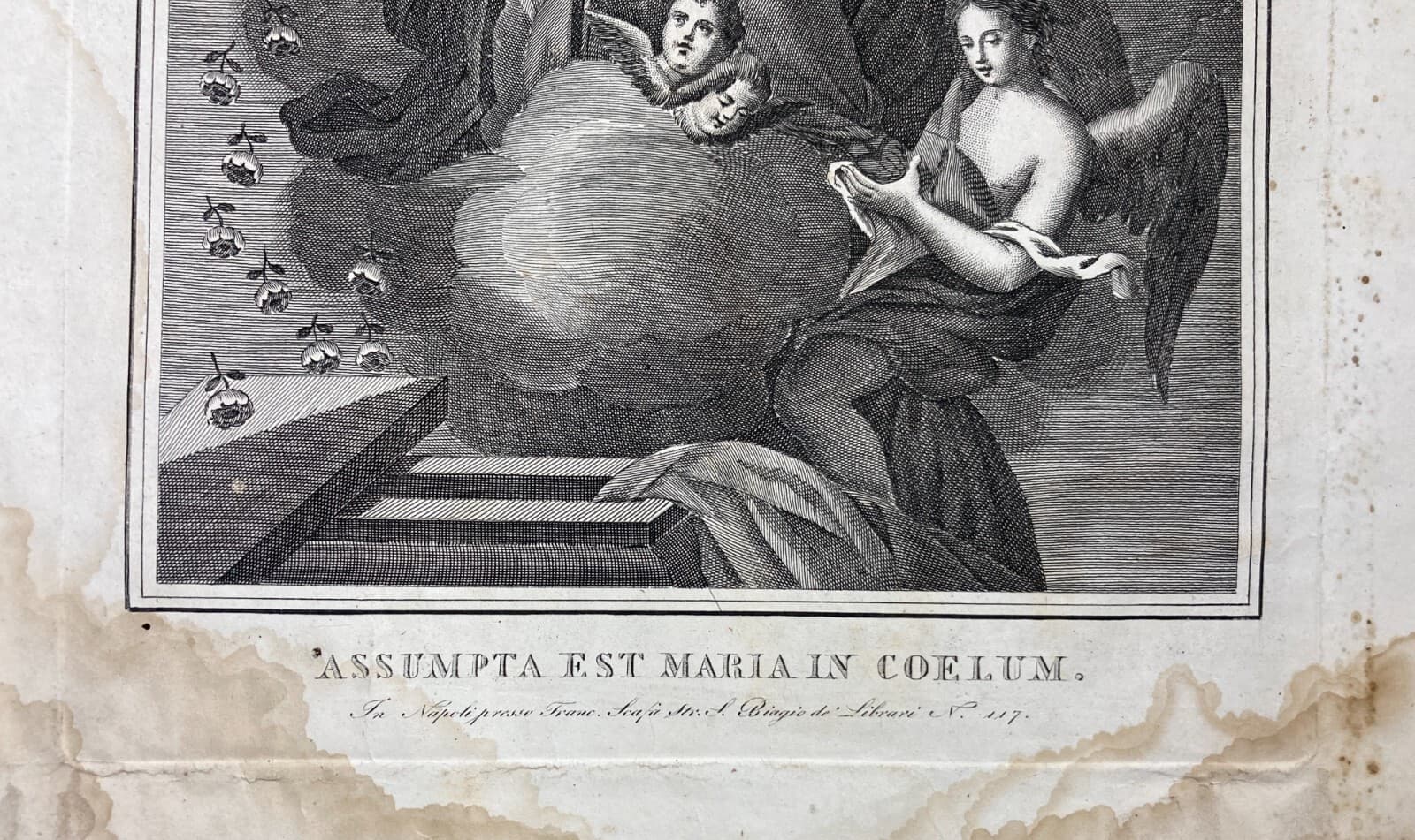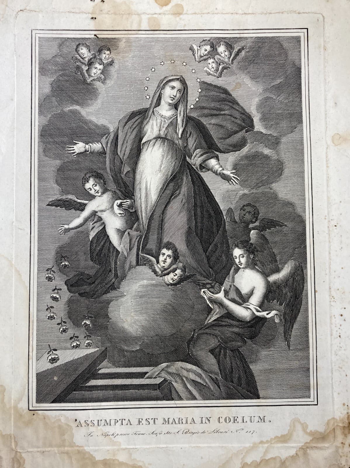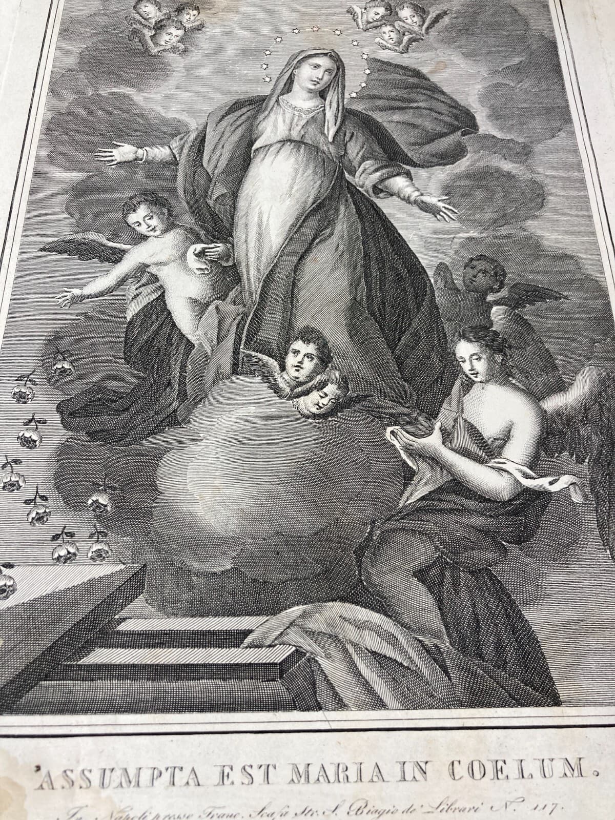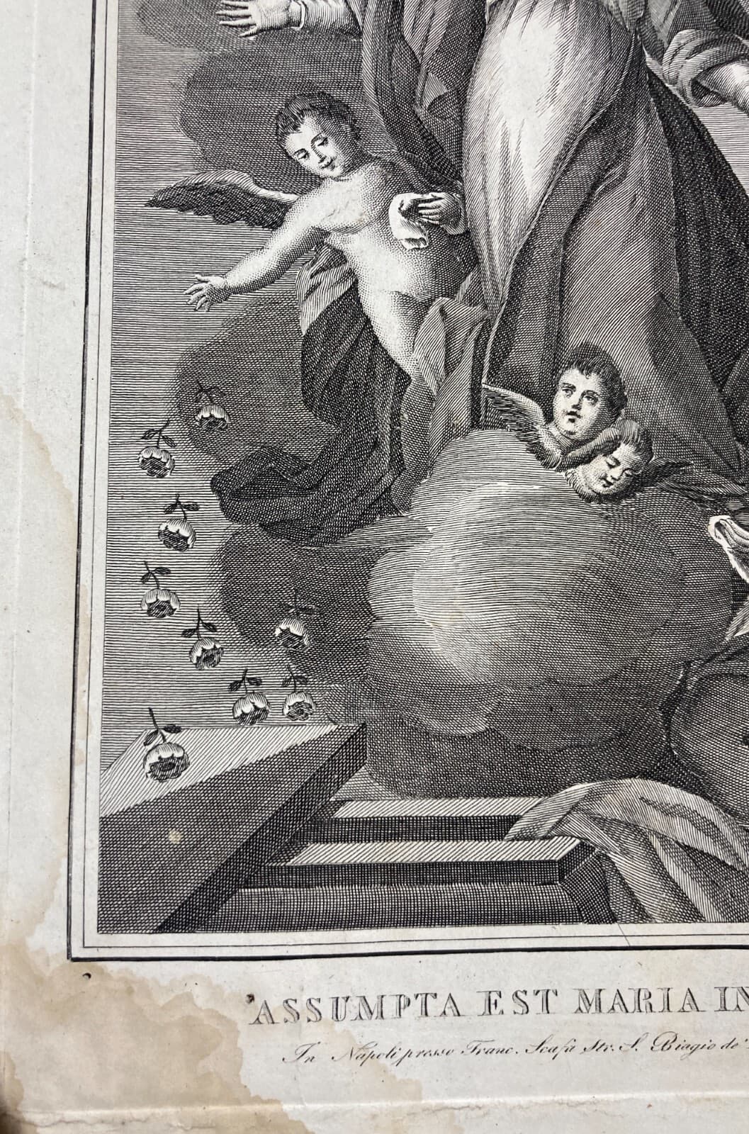 Arte Popolare Devozionale: Assunzione Della Madonna. Incisione Antica Di Francesco Scafa