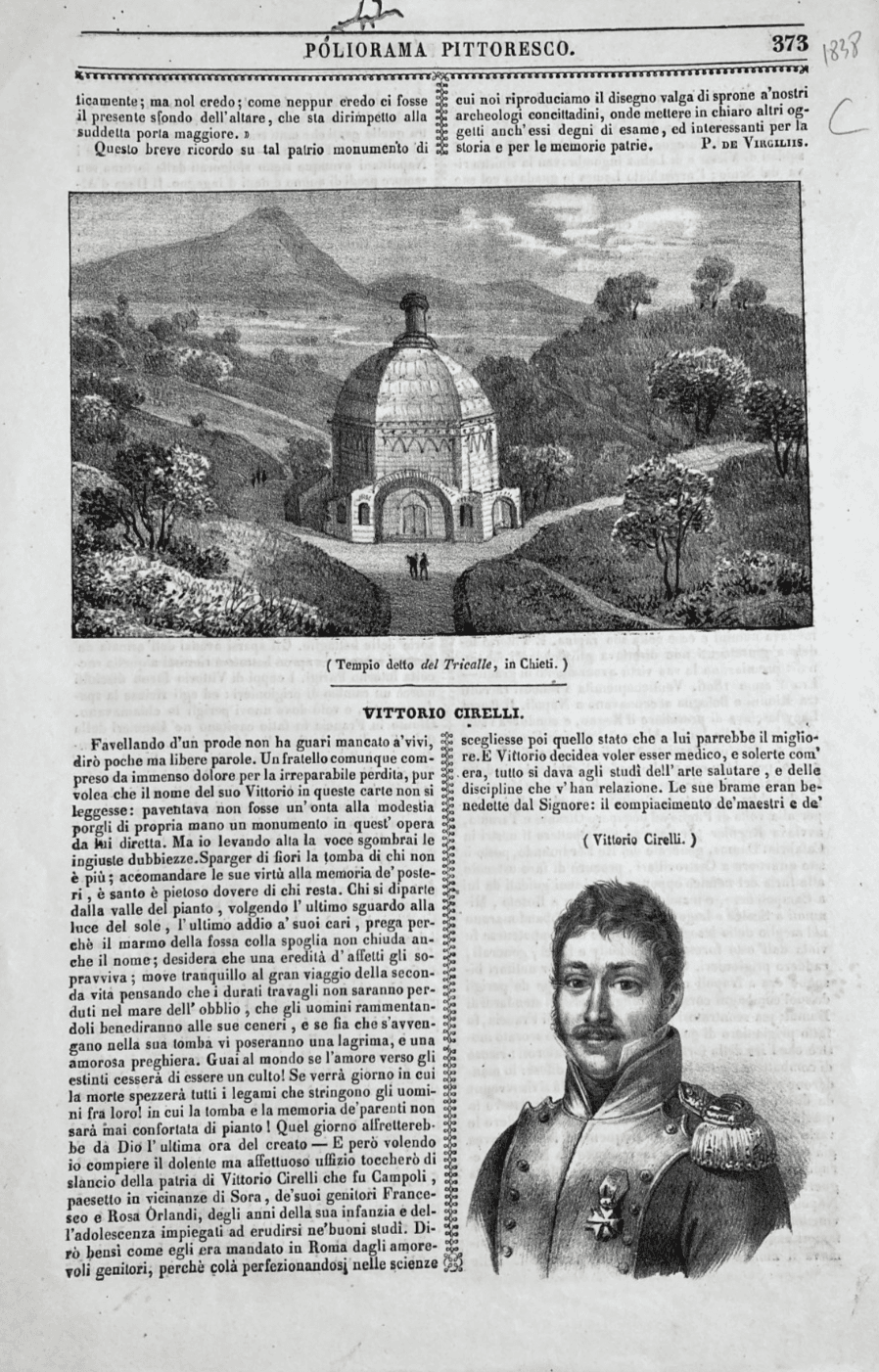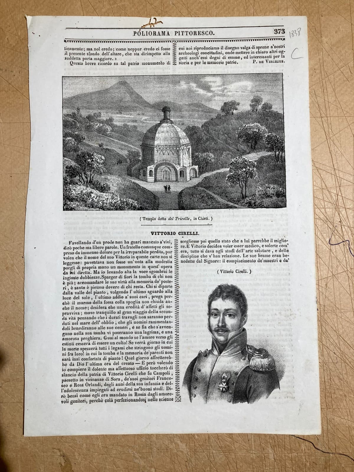 Abruzzo, Chieti, Tricalle. Antica Veduta Con Tempio, Stampa Litografica, Cirelli, 1800.