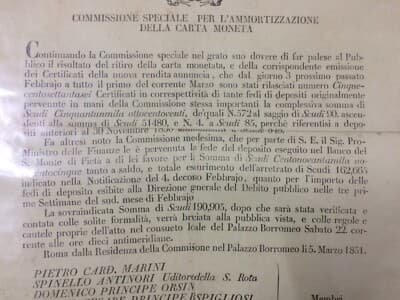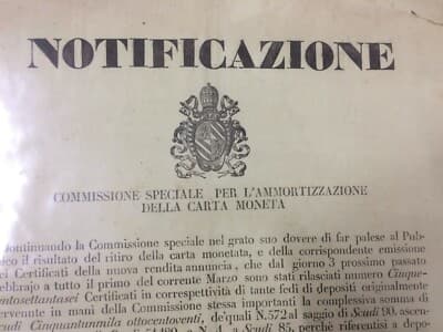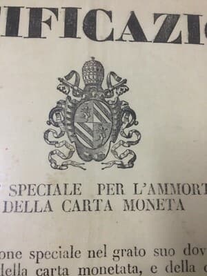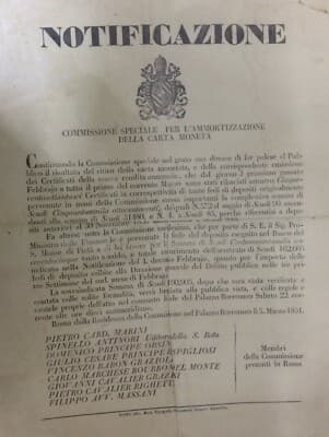 Araldica, Nobiltà Romana, Antico Manifesto: Notificazione Carta Moneta E Numismatica