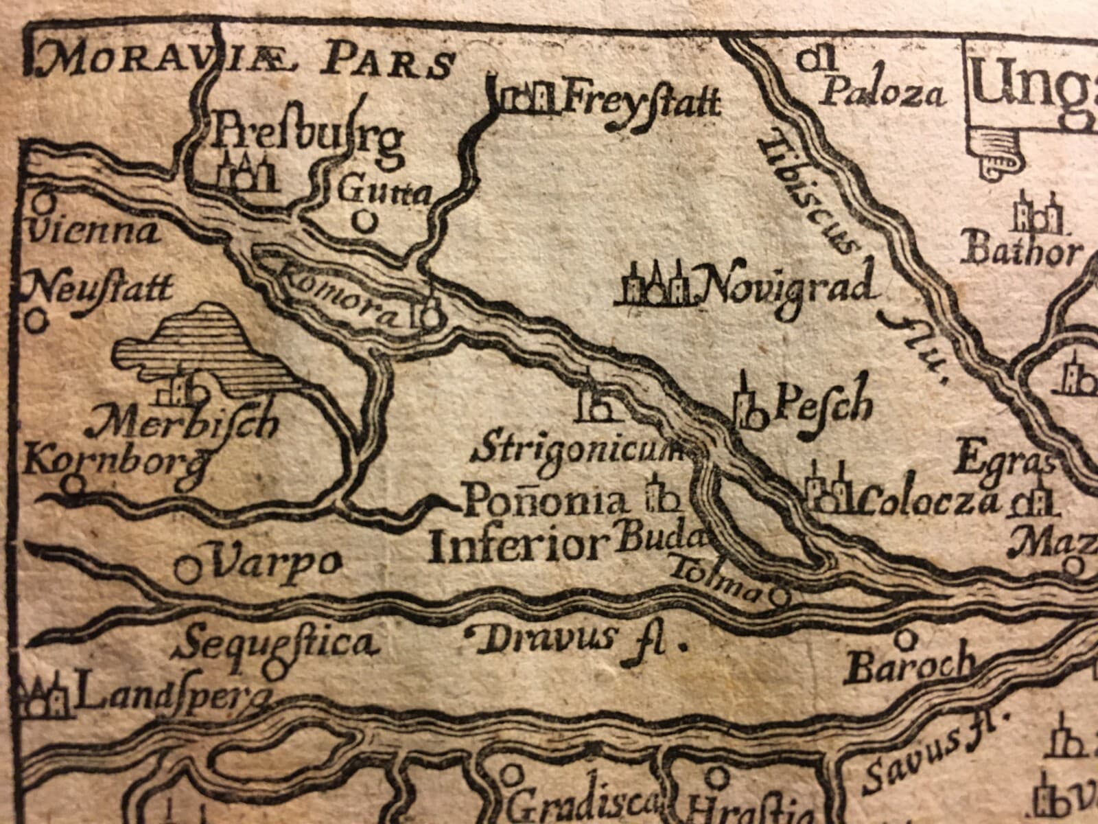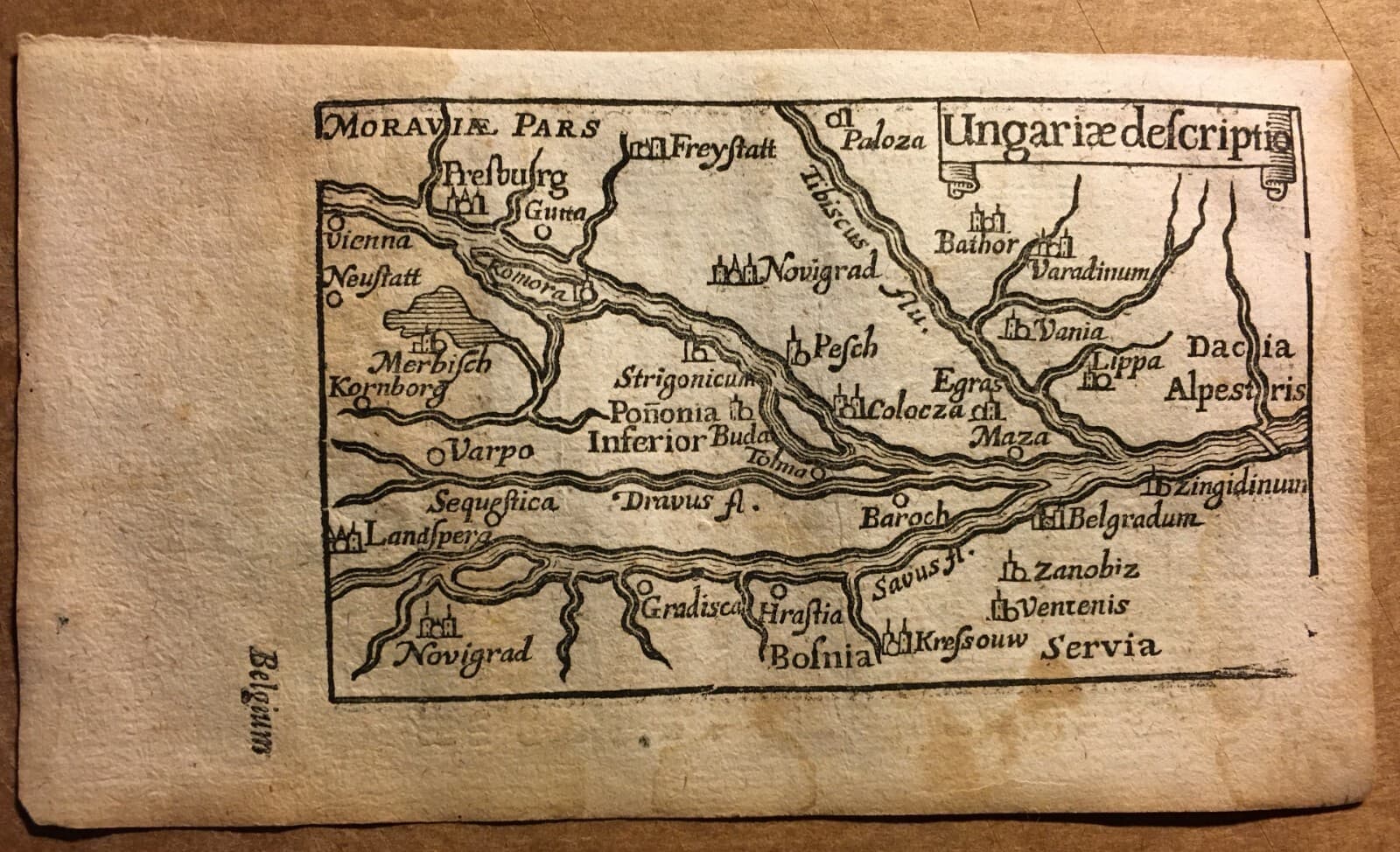 Antica Cartografia Europea: Ungheria, Novograd, Fiume Tibisco E Belgrado