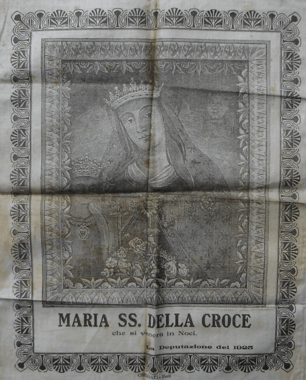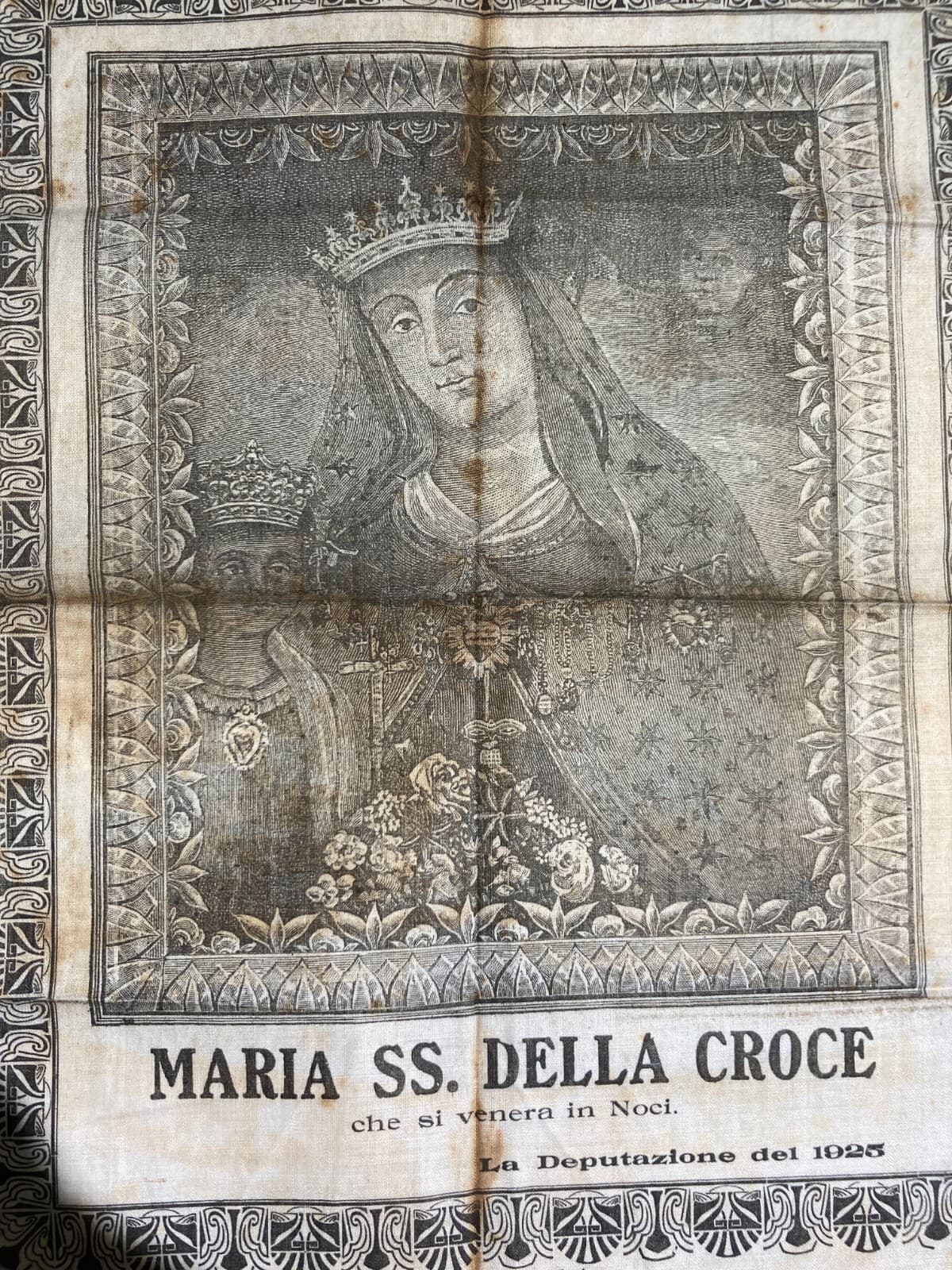 Arte Antica, Stampa Popolare Devozionale: Puglia, Noci, Madonna Della Croce Su Tessuto