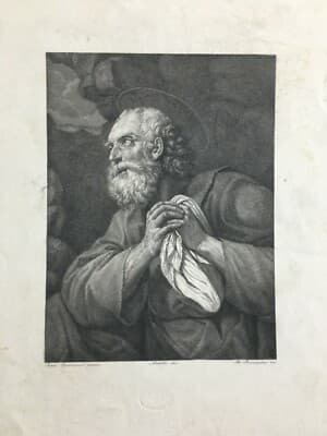 Incisione Devozionale, Santo Da Annibale Carracci, Francesco Rosaspina, Metà XIX Secolo