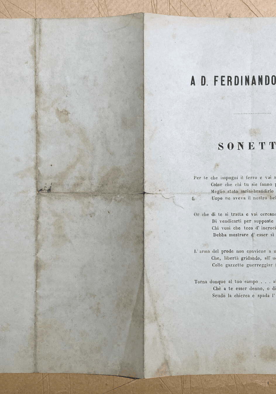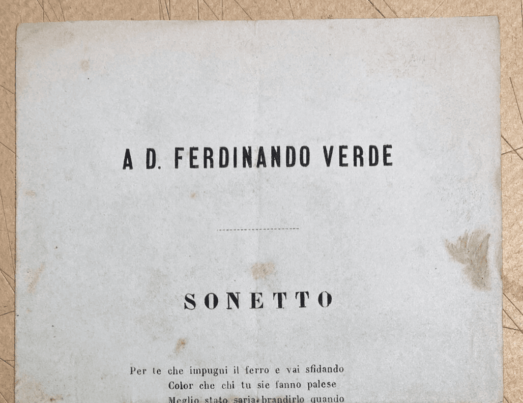 Antico Foglio Volante Ferdinando Verde Unità d'Italia Risorgimento Sonetto