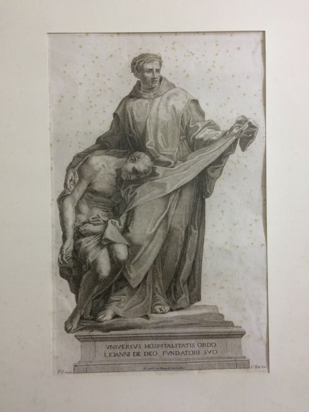 San Giovanni Di Dio, Fondatore Dei Fatebenefratelli Incisione Di Carlo Tinti (XVIII Secolo)