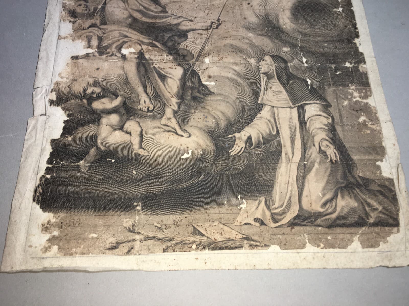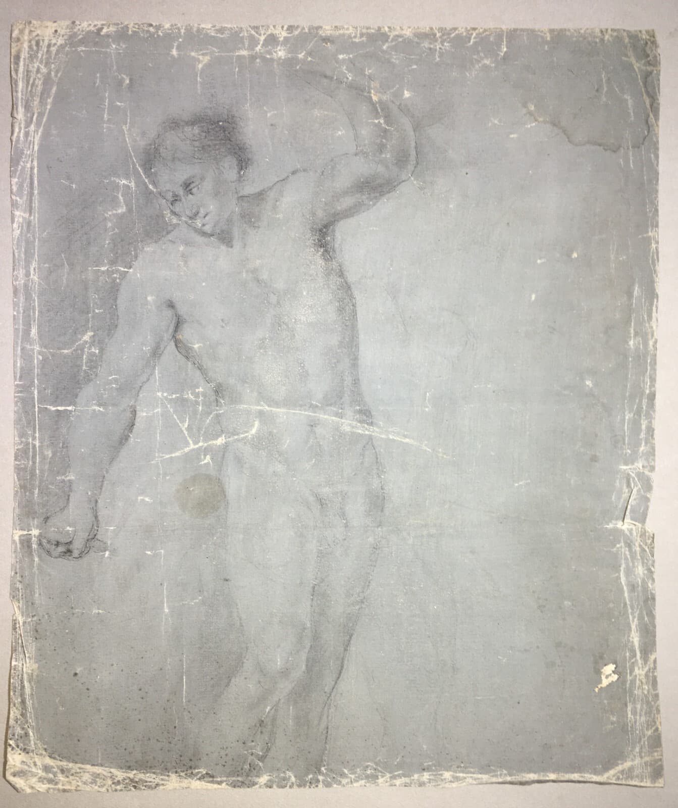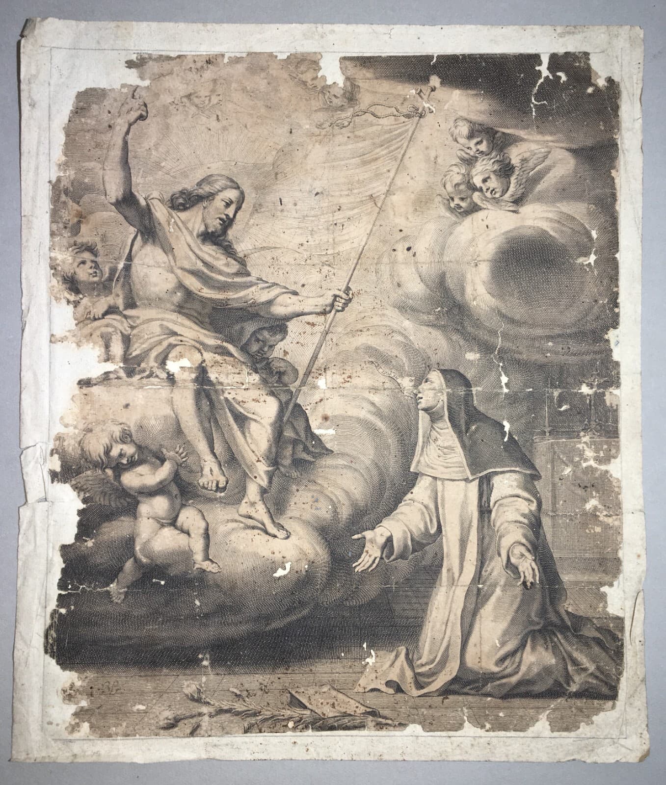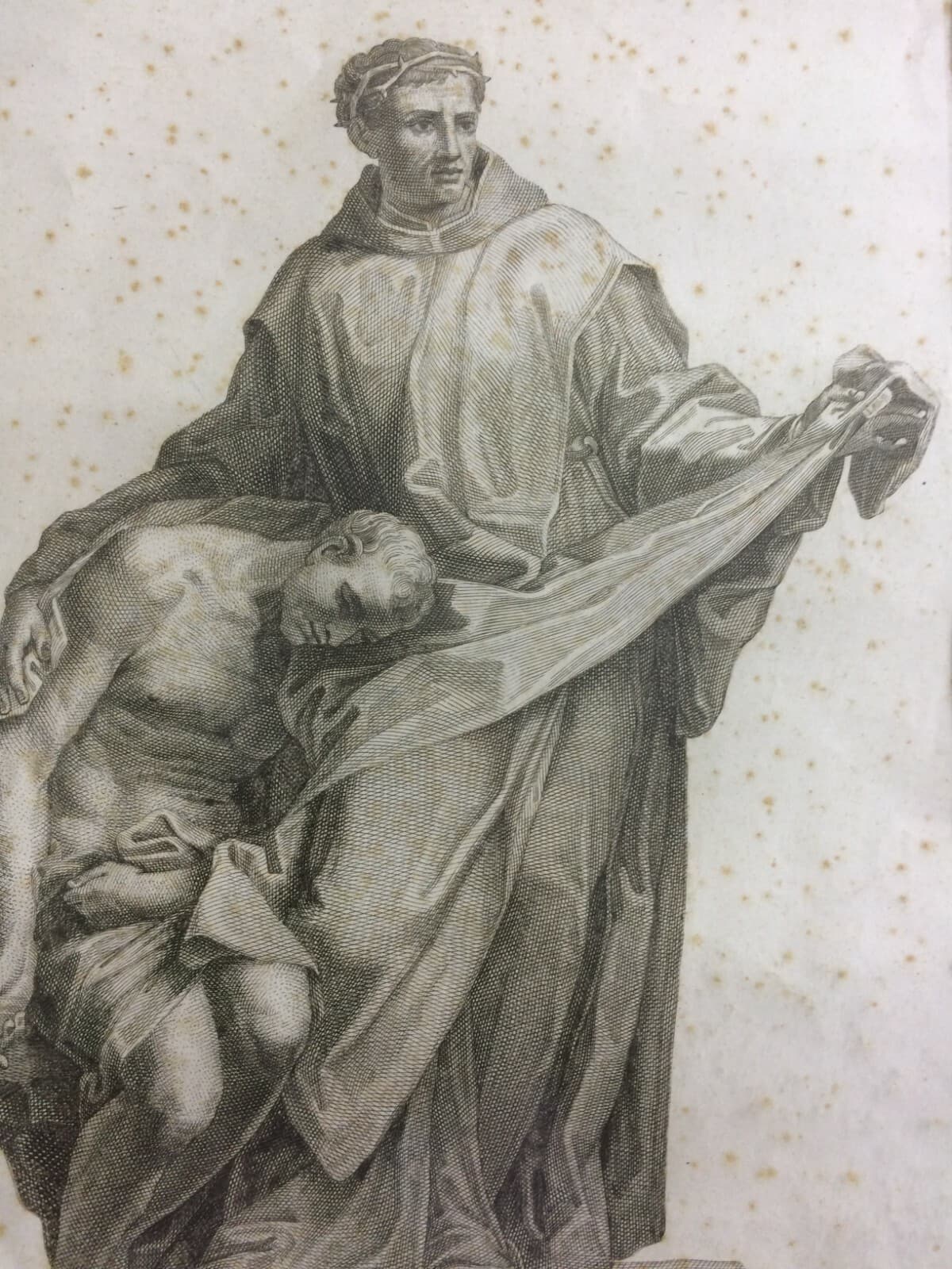 Antico Disegno Di Nudo Maschile E Stampa Devozionale Di Santa Caterina