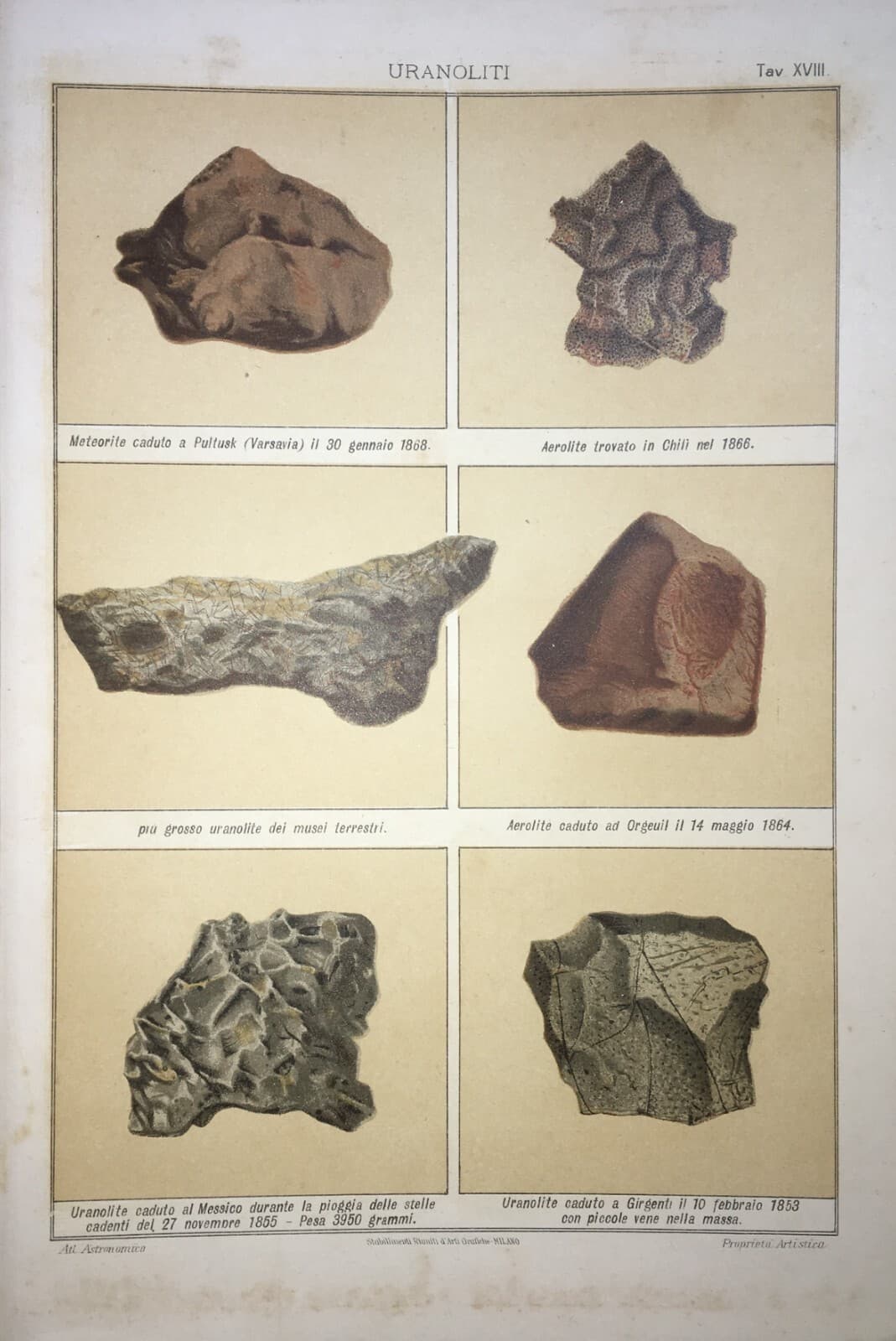 Astronomia, Spazio, Meteoriti, Uranoliti, Aeroliti, Stelle Cadenti, Girgenti. Stampa