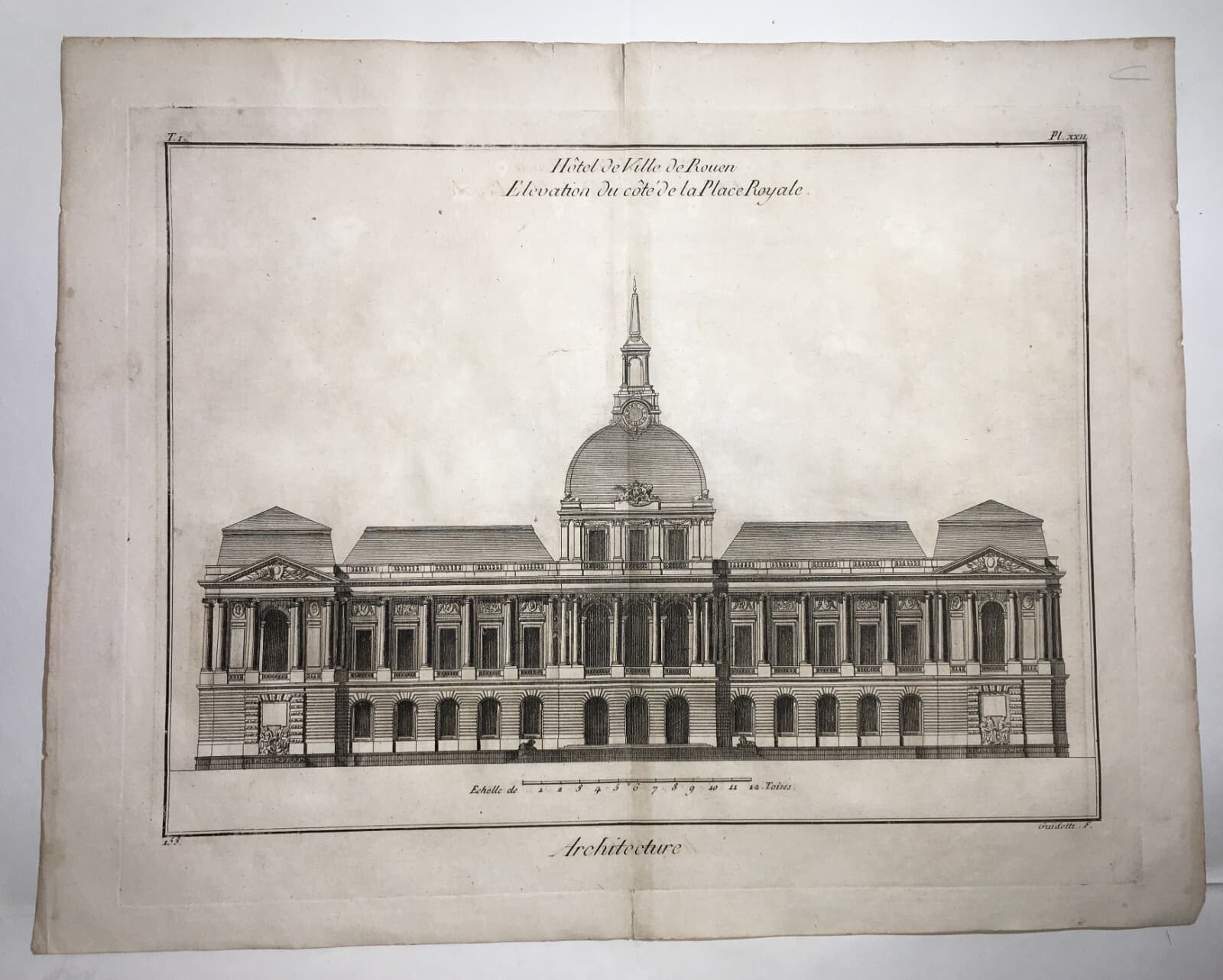 Rouen, Palazzo Reale (Hôtel De Ville). Incisione Di Guidotti, XVIII Secolo
