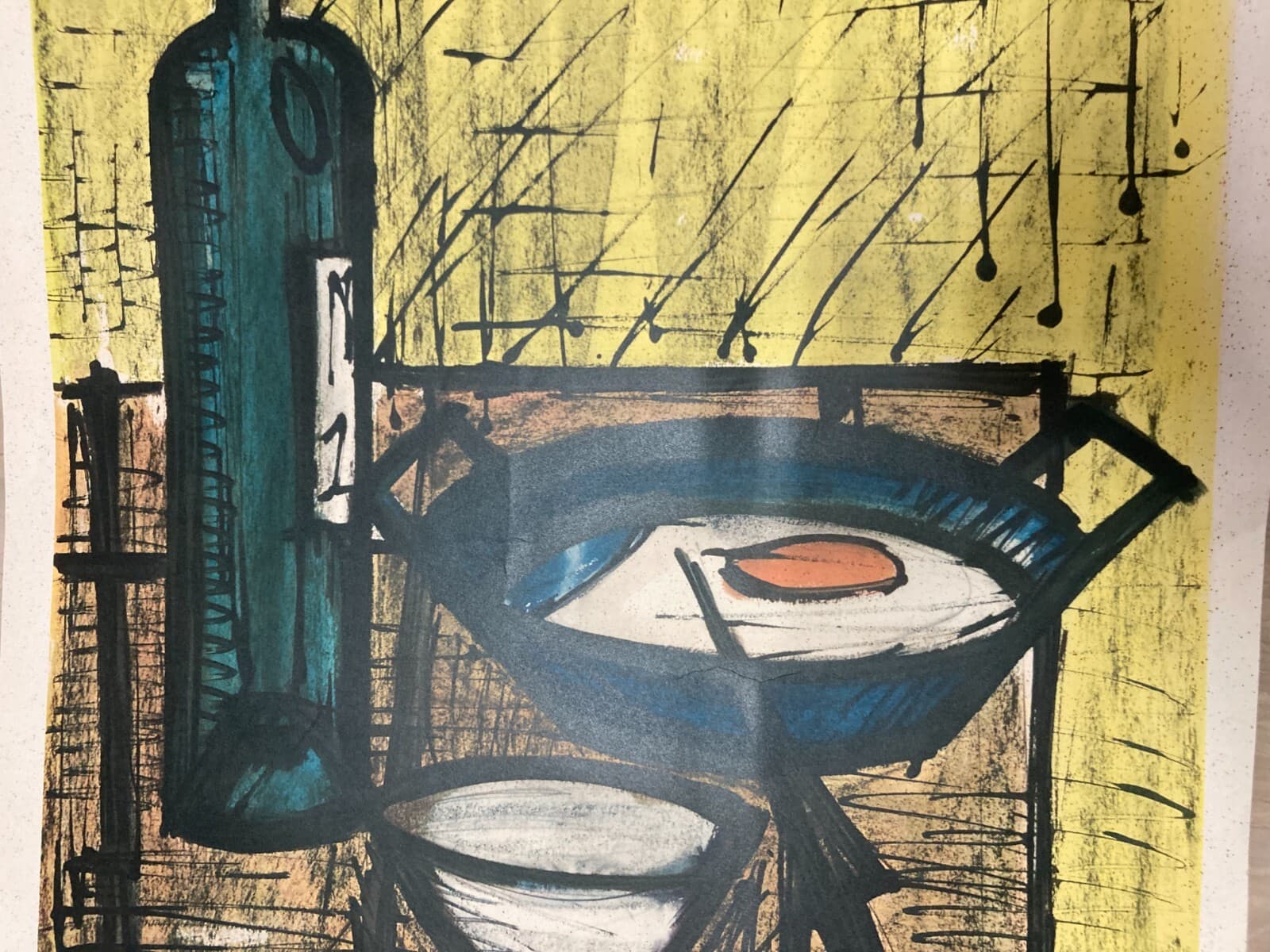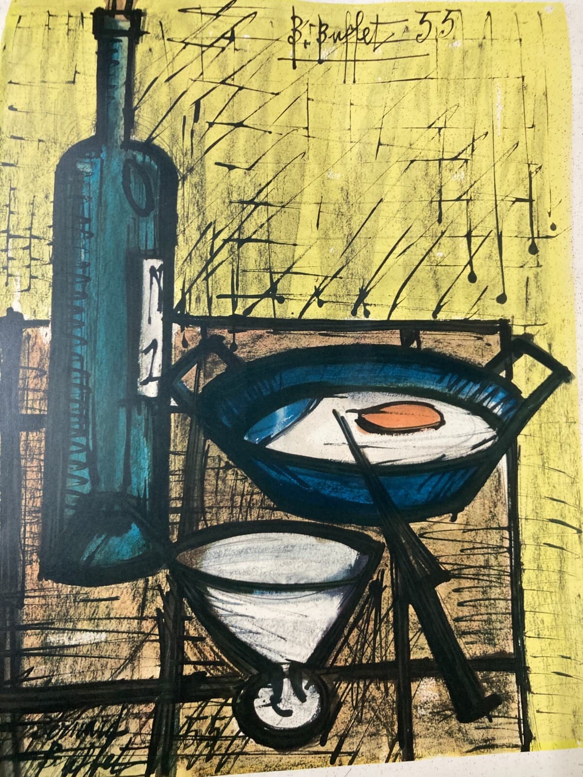 Arte Contemporanea. Bernard Buffet: Natura Morta Con Tegamino E Uova. Grafica, 1955