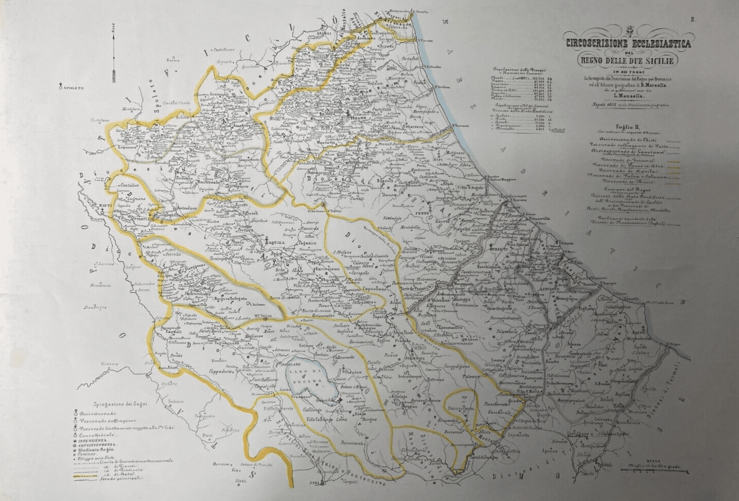 Antica Grande Cartografia Ecclesiastica Marzolla E Manzella: Abruzzo, Molise E Marche, 1859