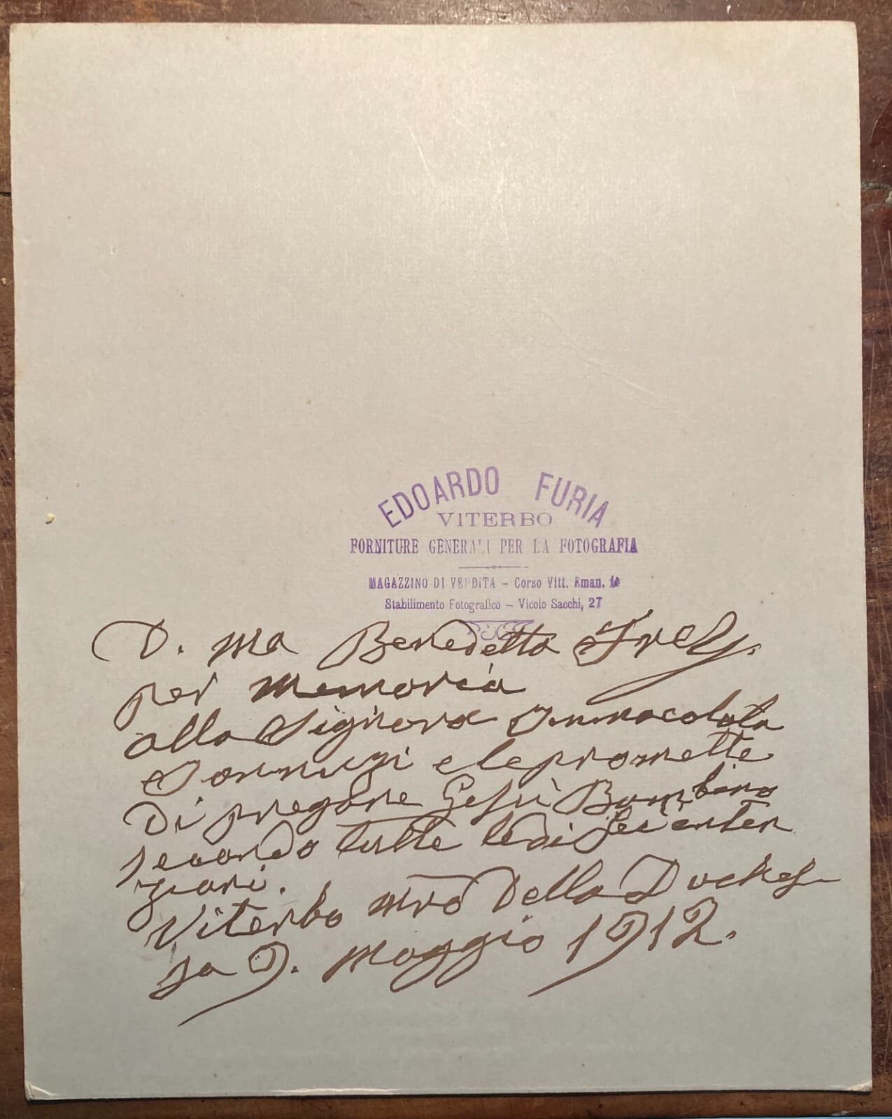 Antica Foto Originale, Viterbo, Fotografo Furia, Suor Benedetta Frey, Autografo