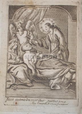 Antica Stampa Popolare Devozionale: Sacra Famiglia, Morte Di S. Giuseppe, Cappelli