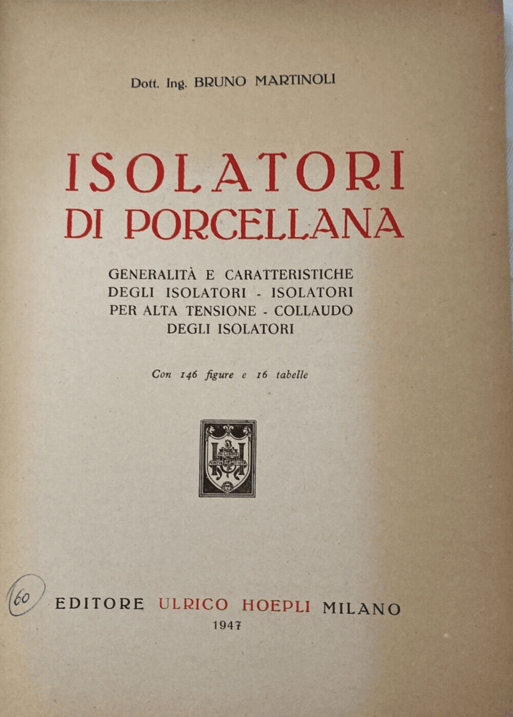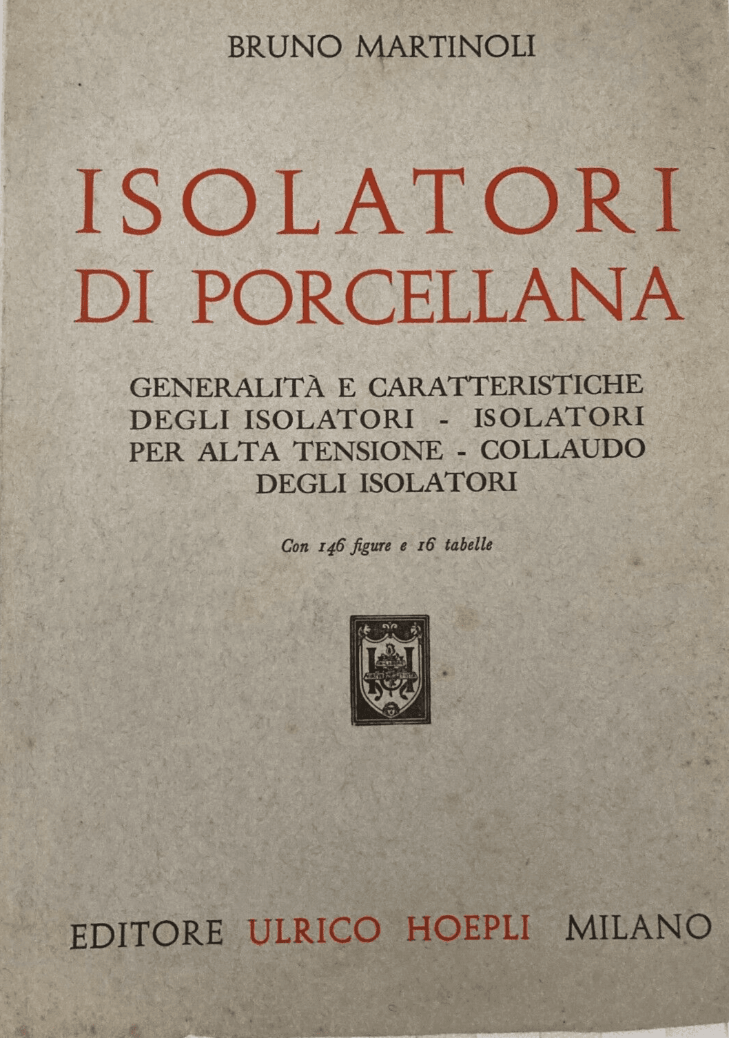 Isolatori Di Porcellana. Trattazione Tecnica Hoepli, 1947