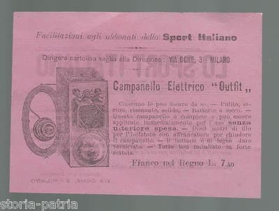 Mini Volantino Pubblicitario Campanello Elettrico Outfit, Sport Italiano, Circa 1910