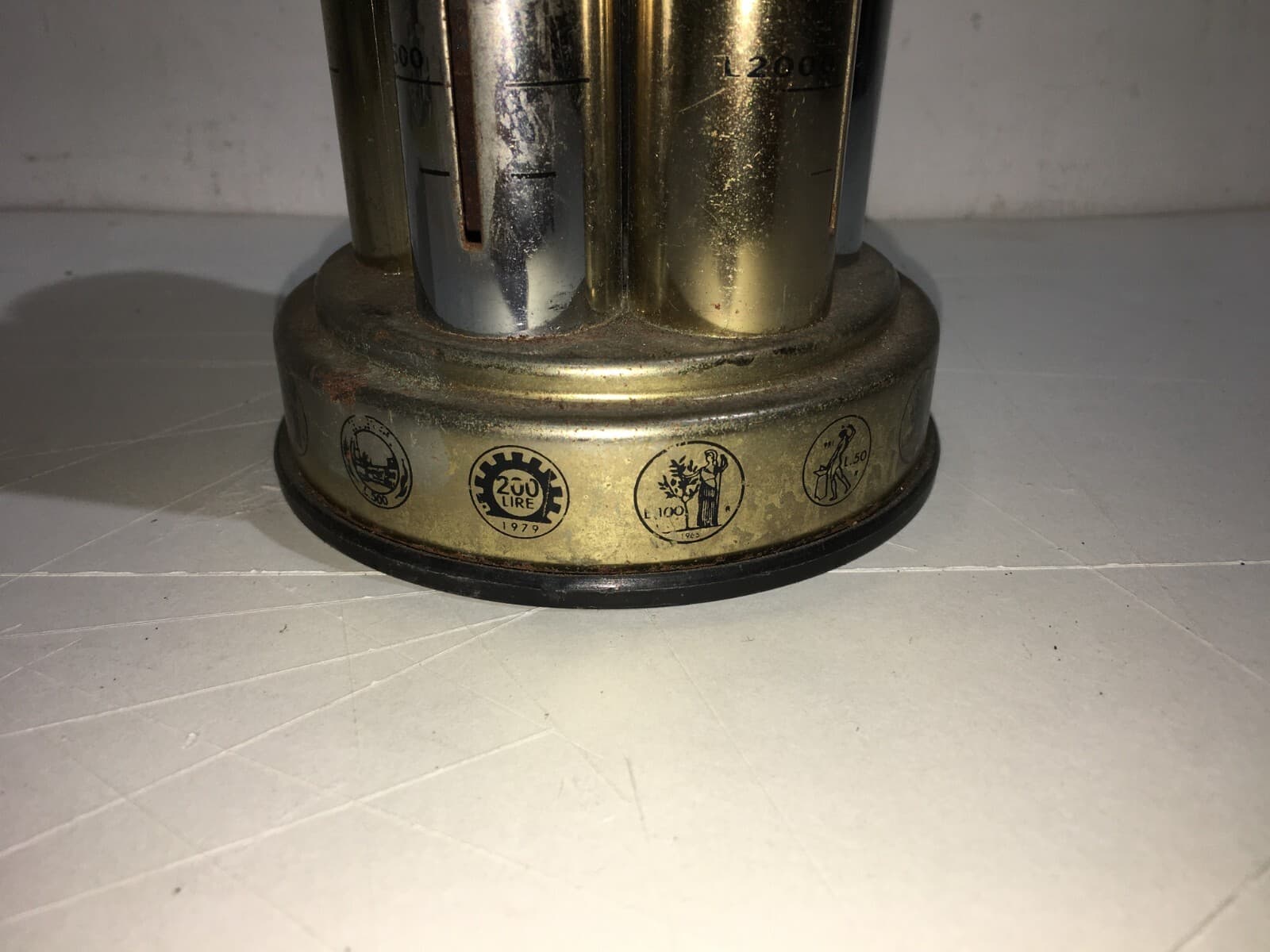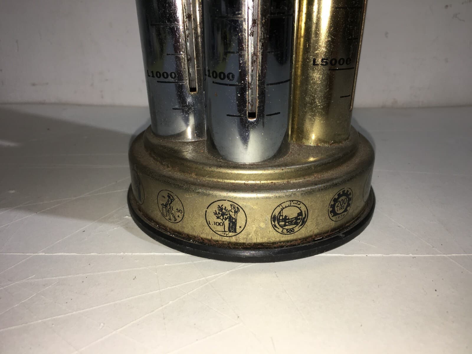 Portamonete E Salvadanaio Vintage In Metallo Cromato Per Lire Italiane