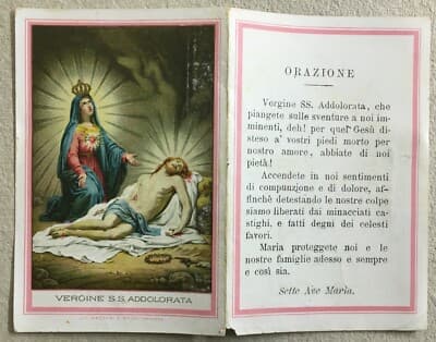 Abruzzo, Chieti, Santino Devozionale, Pietà, Luttino, Obletter, 1936