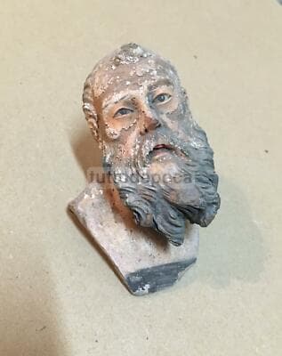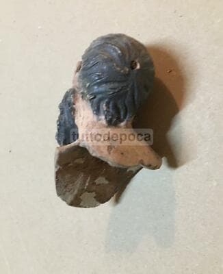 Immagine Devozionale Antica, Testina In Terracotta, Presepio Napoletano, XIX Secolo