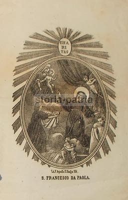 Antica Stampa Popolare Devozionale San Francesco Di Paola Messina Sicilia XIX Secolo