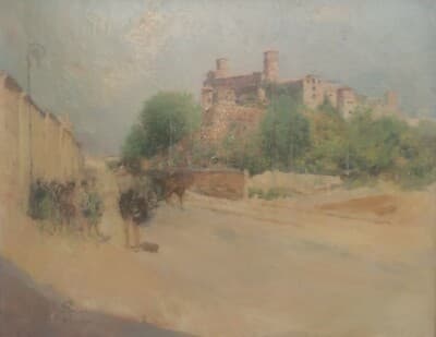 Pittura Italiana: Paesaggio Con Veduta Di Borgo Laziale Di Giuseppe Pastina, 1936