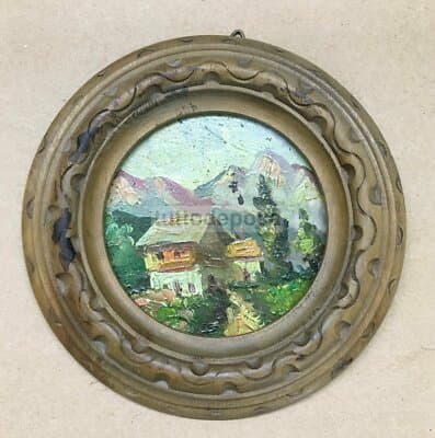 Arte Del '900: Miniatura Artistica Paesaggio Con Case E Montagna Pesaro