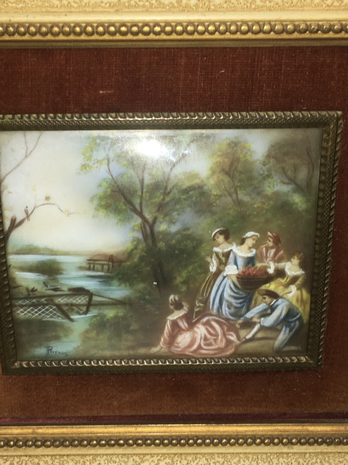 Miniatura Con Scena Campestre E Veduta Animata, Cornice d'Epoca