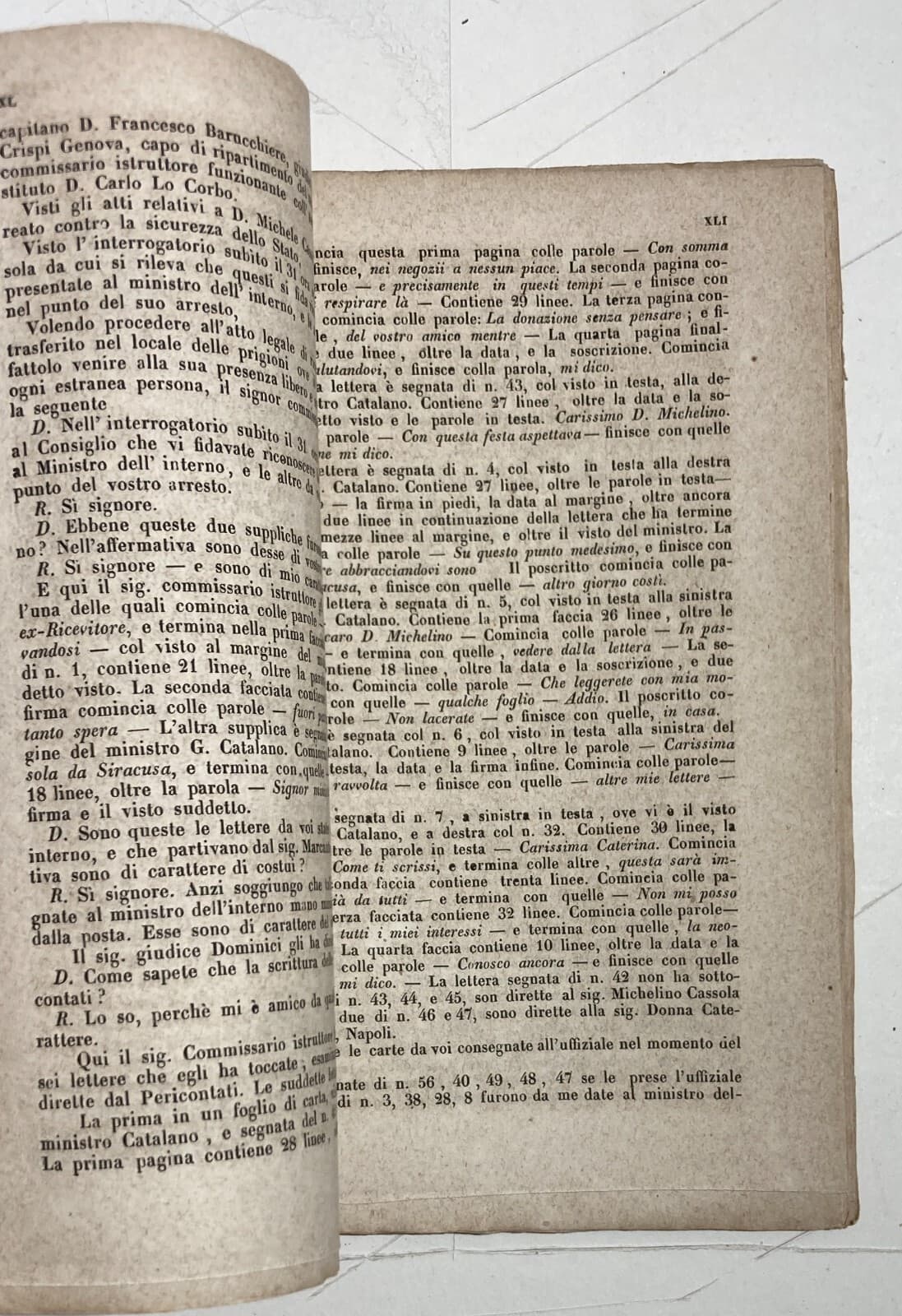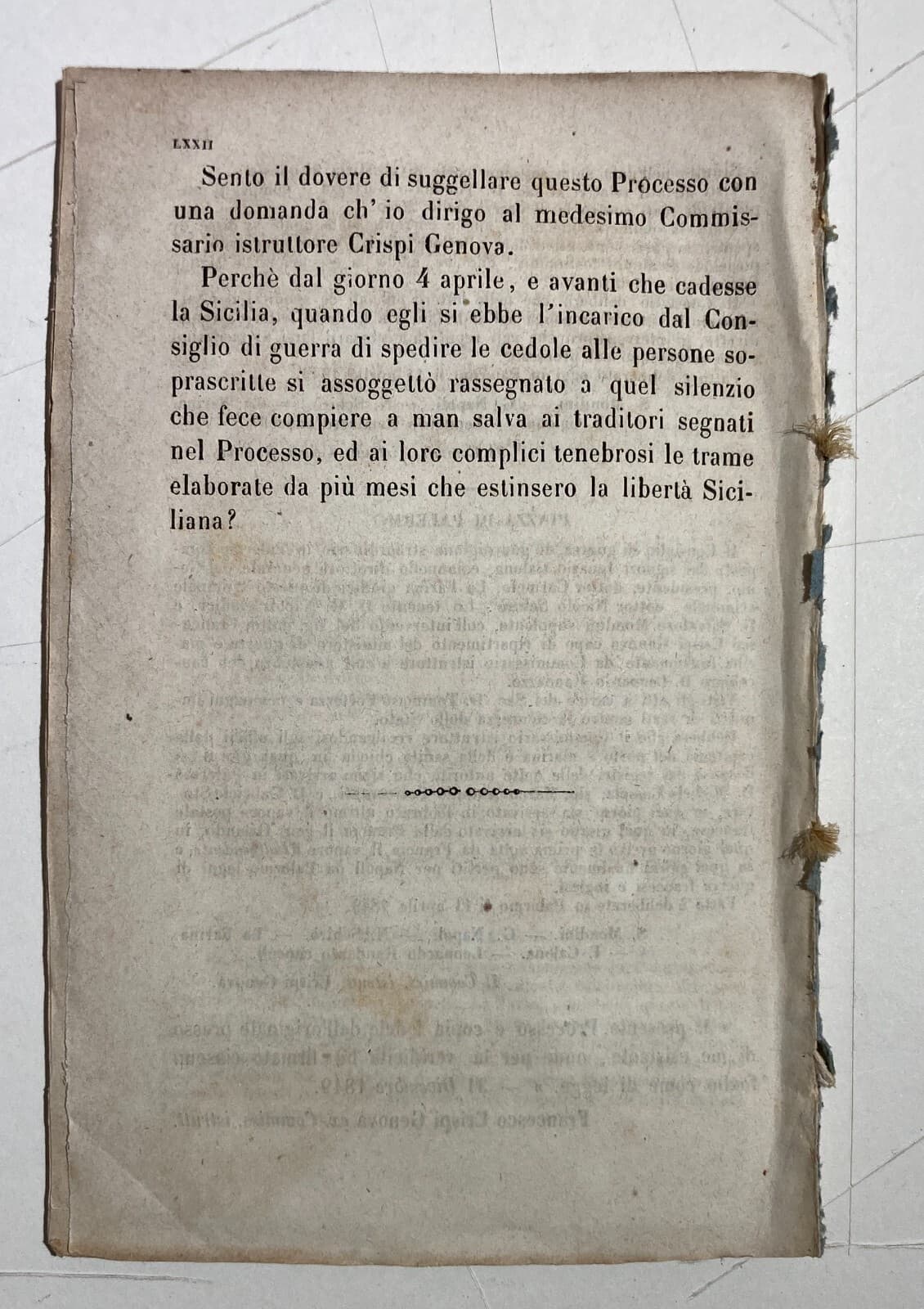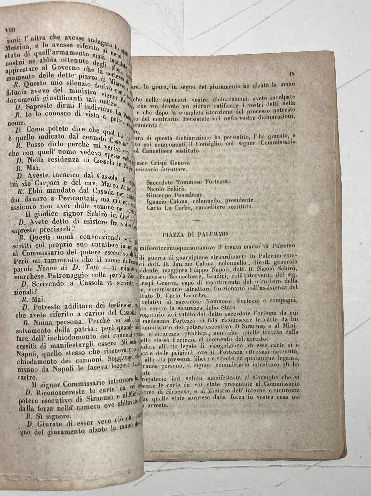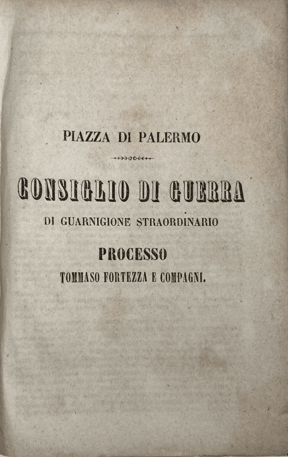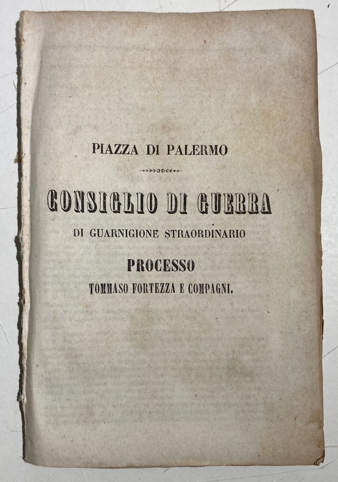 Risorgimento. Sicilia. Palermo. Processo Fortezza. Consiglio Di Guerra. Rara Edizione