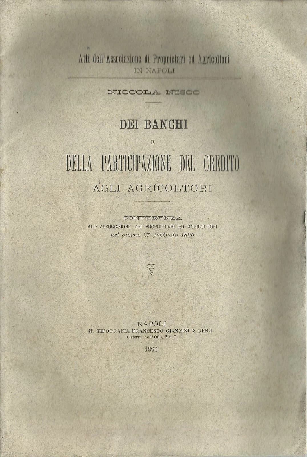Agraria, Agricoltura, Credito Agli Agricoltori, Banche, Nisco, Napoli: Rara Edizione Del 1890