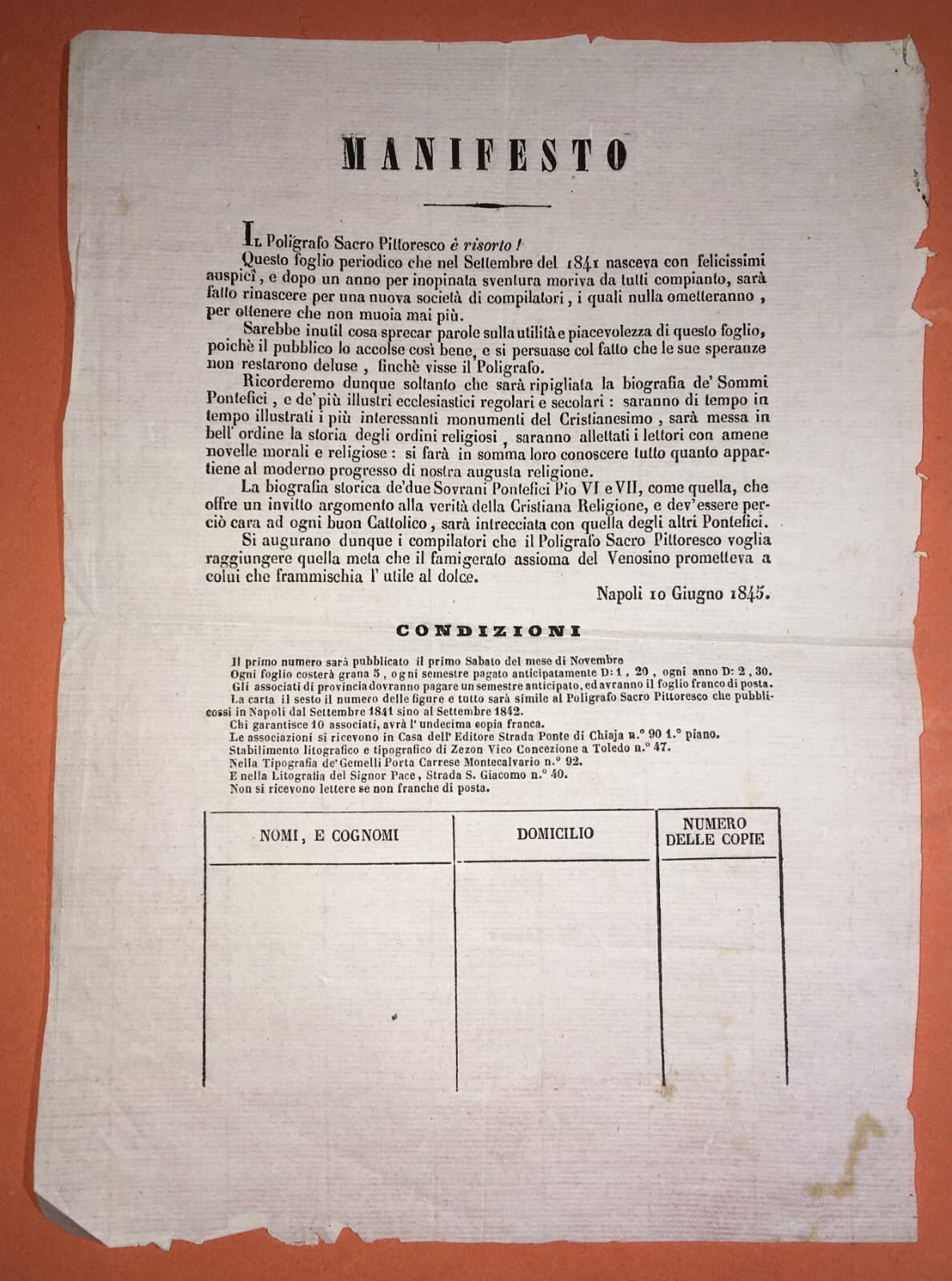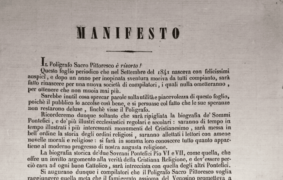 Napoli, Propaganda Editoriale. Giornali Religiosi: Poligrafo Sacro Pittoresco, 1845
