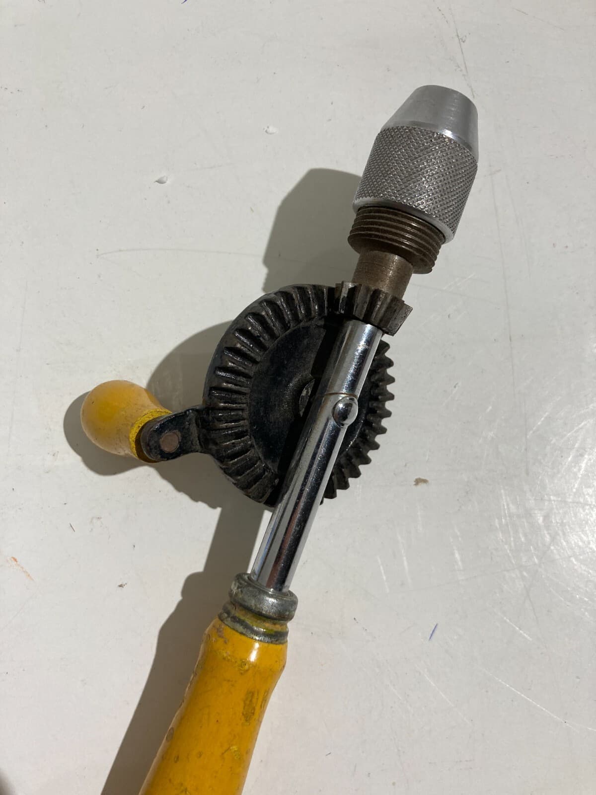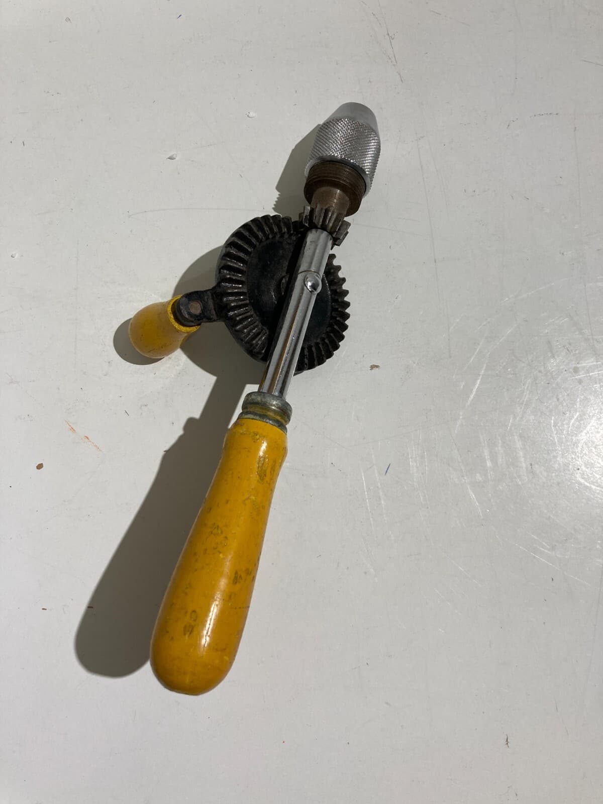 Trapano A Mano d'Epoca In Metallo E Legno Laccato
